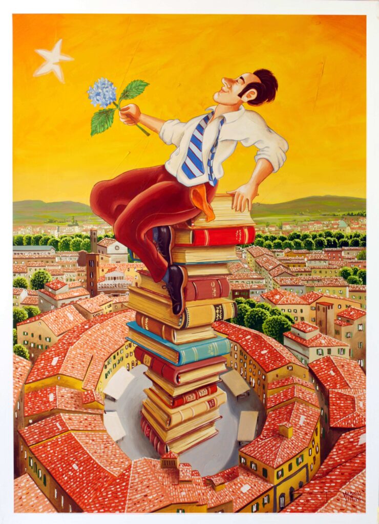 Maurizio Vinanti è nato a Firenze da una famiglia di artigiani ed artisti. Fin da giovanissimo ha mostrato una naturale inclinazione per la pittura che lo ha indotto a frequentare l’Istituto Statale d’Arte di Firenze dove ha conseguito il diploma di Maestro d’Arte e Magistero d’Arte. Dopo i primi esordi giovanili caratterizzati dalla sperimentazione di vari stili, negli anni ’90 ha iniziato il suo percorso nella tradizione della pittura ottocentesca, dalla quale si discosta nel ’96 per creare il suo personalissimo mondo fatto di paesaggi e personaggi fantastici che lo identifica poi come pittore surrealista. L’arte dell’artista fiorentino è caratterizzata da colori accesi e contrastanti, in cui sono rappresentati ricordi di paesaggi surreali e remote fantasie. La rappresentazione onirica della realtà e la continua ricerca figurativa che parte da paesaggi reali e si addentra in atmosfere fantastiche, fanno di lui un esponente unico del surrealismo contemporaneo.