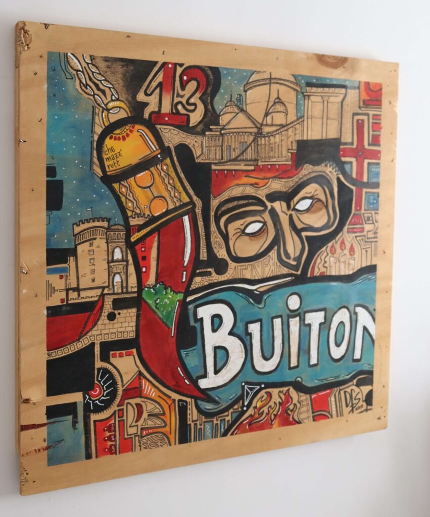 Questa opera rappresenta un omaggio autentico e profondamente sentito a Napoli e al suo “mazz’rutt”, ovvero a quella forma di fortuna imprevedibile e viva, comprensibile solo a chi la città la abita, la attraversa e la respira ogni giorno. “Mazz’rutt” è un termine napoletano, ricco di sfumature e difficile da rendere con una sola parola. È un modo ironico e affettuoso per dire che qualcuno o qualcosa ha una fortuna sfacciata, significa essere baciati dalla sorte in modo tutto napoletano, una fortuna che non è solo casuale, ma è anche frutto dell’ingegno, della prontezza e della leggerezza con cui si affronta la vita.