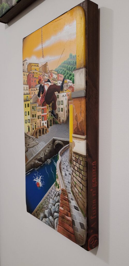 La serie ‘A Tumbulella’, Il Bingo Napoletano, è composta da un gruppo di 90 opere ispirate ai numeri della Smorfia, uno straordinario viaggio attraverso una Napoli colorata che viene vissuta dall’artista come “un teatro a cielo aperto”.