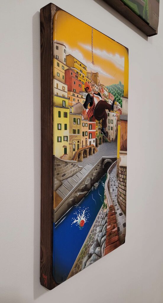 Alcune di queste tavole sono invece dedicate al suo luogo d’origine, cioè alla Toscana, poiché rappresentano situazioni strettamente legate ai ricordi dell’infanzia. Una carrellata di colori ed emozioni forti.