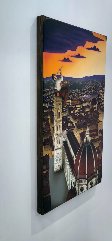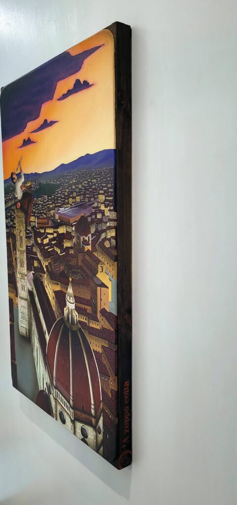 Alcune di queste tavole sono invece dedicate al suo luogo d’origine, cioè alla Toscana, poiché rappresentano situazioni strettamente legate ai ricordi dell’infanzia. Una carrellata di colori ed emozioni forti.