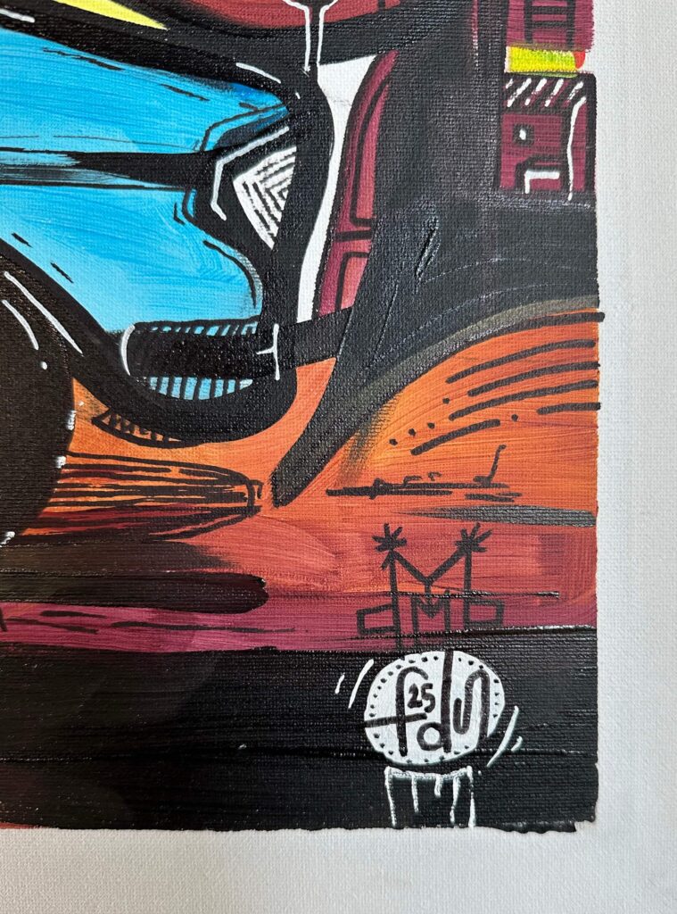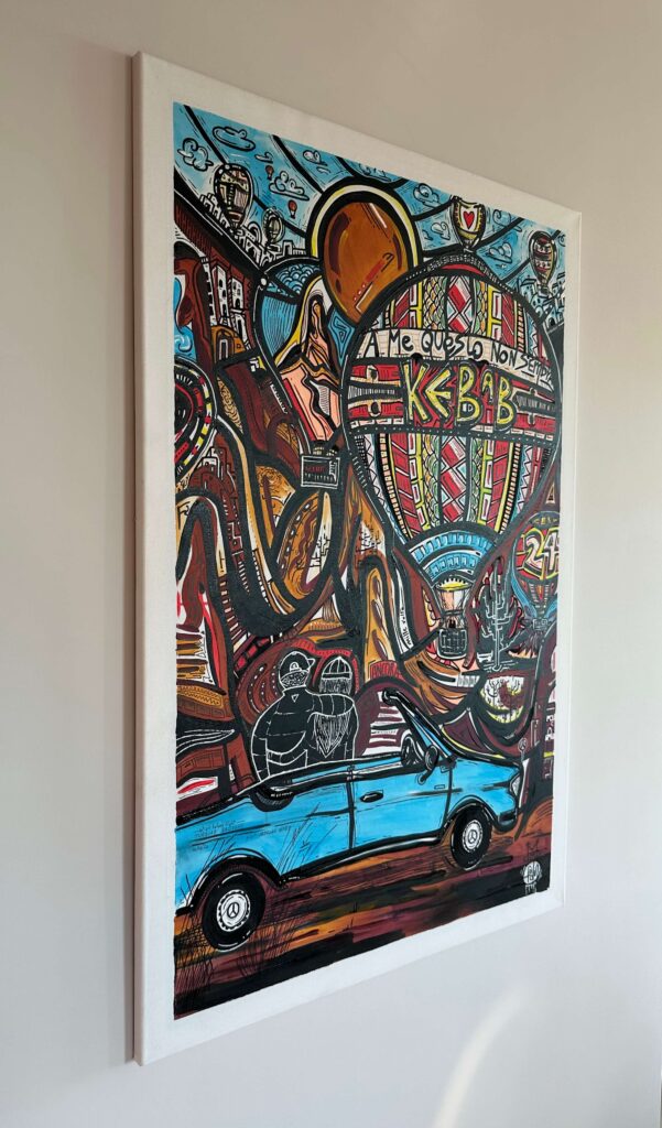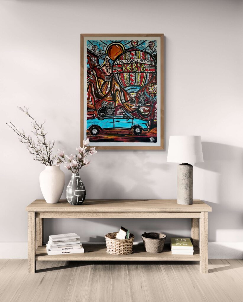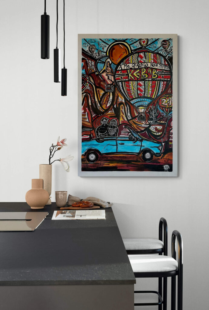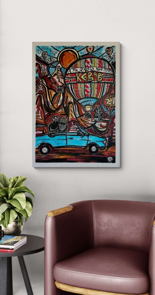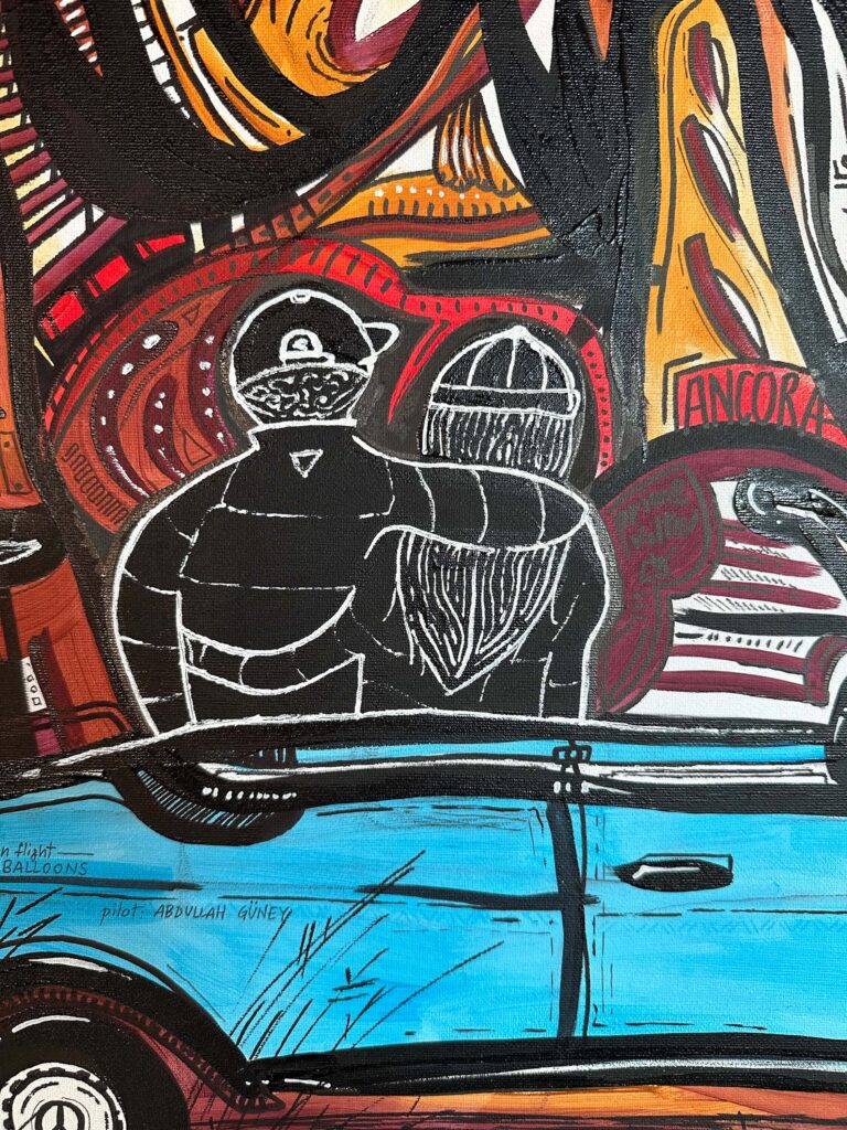 Questa tela racconta di due innamorati che partono per la Cappadocia, con gli occhi pieni di meraviglia e il cuore leggero.