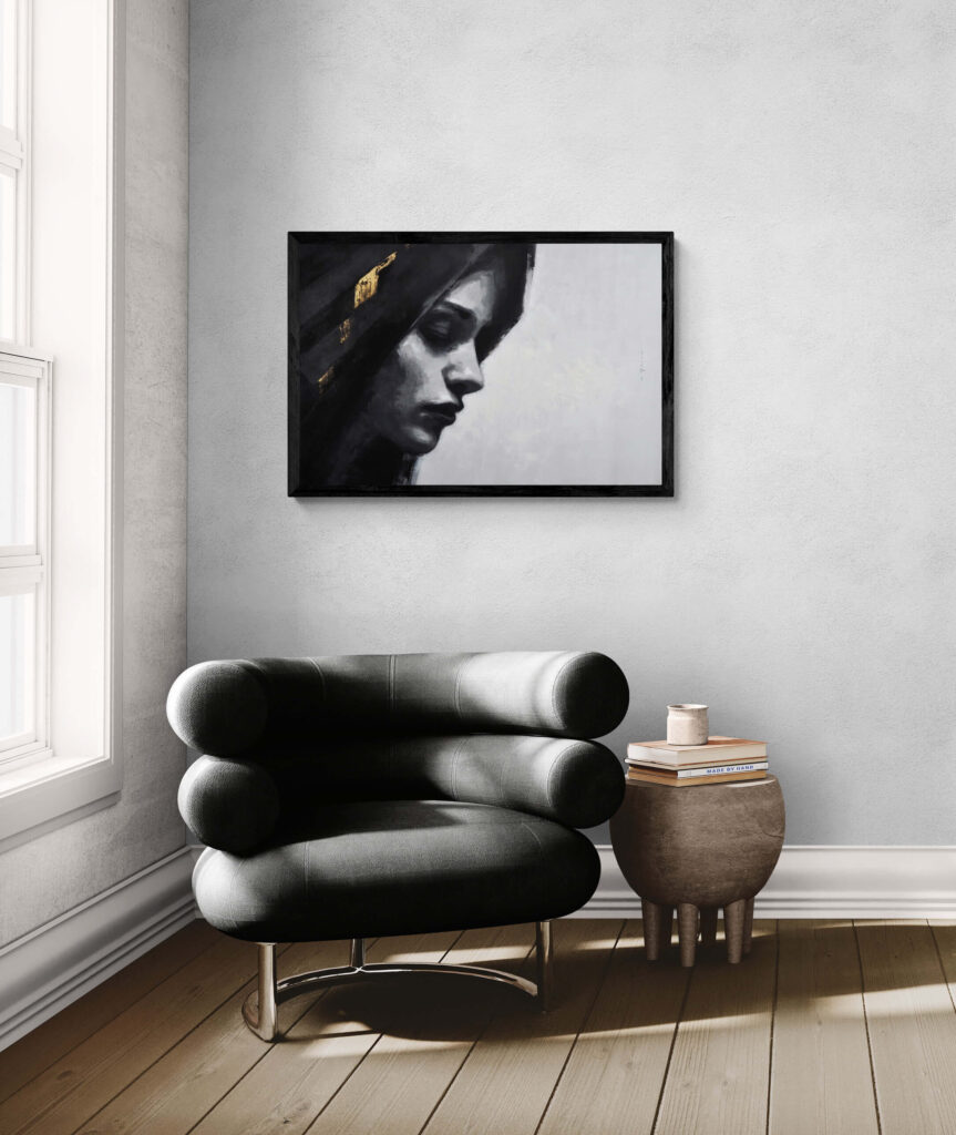 Su Mucatore nero, come un’ombra che protegge e rivela, si dispone sul capo con quella grazia silenziosa che richiama il morbido incedere delle barche che scivolano sul Cedrino nel giorno in cui ricorre Santa Maria ‘e Mare.
