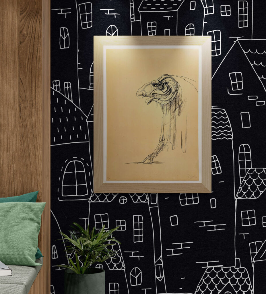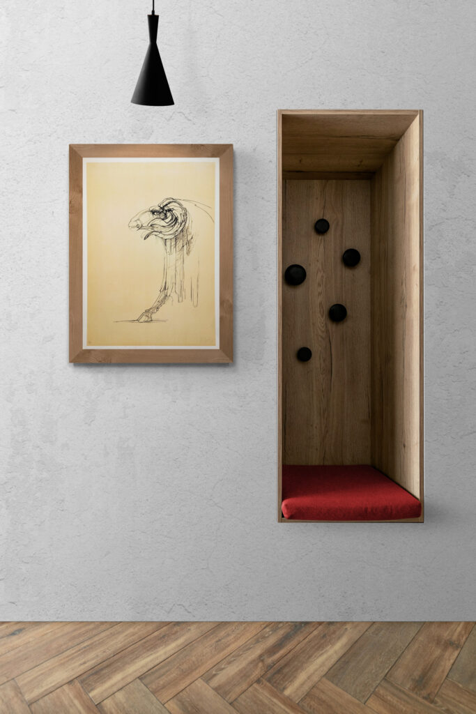 Fa parte della cartella di litografie “LE BESTIAIRE OU CORTEGE D’ORPHEE” tirata nel 1977, su carta appositamente fabbricata dalla Cartiera Magnani di Pescia, in 70 esemplari in numeri arabi + 50 in numeri romani + 5 prove di autore.