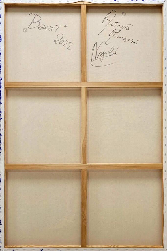 ‘’In questa mia opera, ho voluto celebrare la danza come una forma d’arte capace di evocare un’ampia gamma di emozioni e sensazioni profonde. La danza qui diventa simbolo di tensione e rilascio, di forza e delicatezza, un equilibrio perfetto tra precisione tecnica e spontaneità creativa. Le figure sembrano muoversi in un contesto astratto e onirico, dove lo spazio si dissolve in una dimensione immateriale e senza confini, permettendo alla danza di esprimere la sua essenza più pura e trascendente.