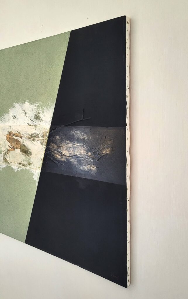 Con delicatezza e poesia, il dipinto ci trasporta in un mondo sospeso, dove l’anima si lascia cullare dal vento e dalla luce mutevole del cielo.