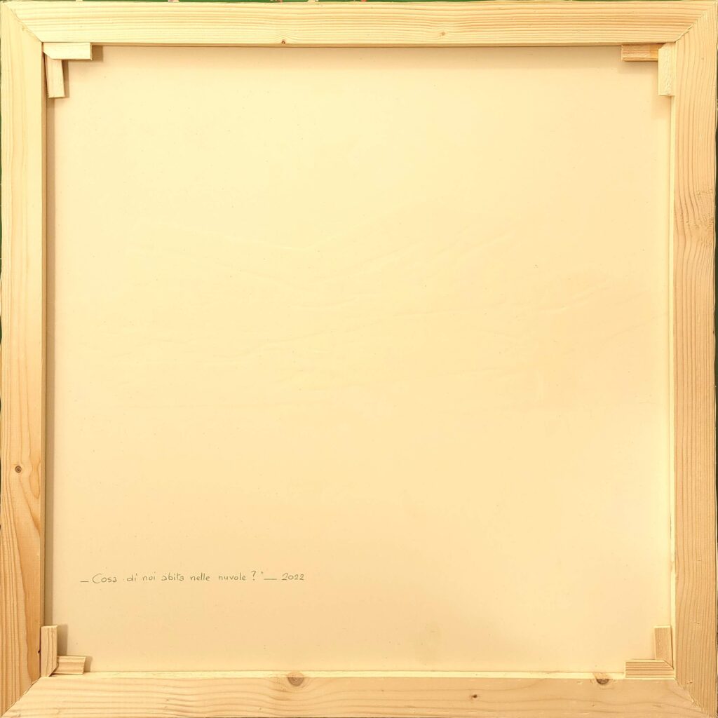 Siamo di fronte ad un’opera che invita alla riflessione e al sogno. L’artista ci suggerisce che le nuvole sono custodi impalpabili delle nostre speranze, delle emozioni più leggere, di ciò che di noi è fatto di desideri e immaginazione.