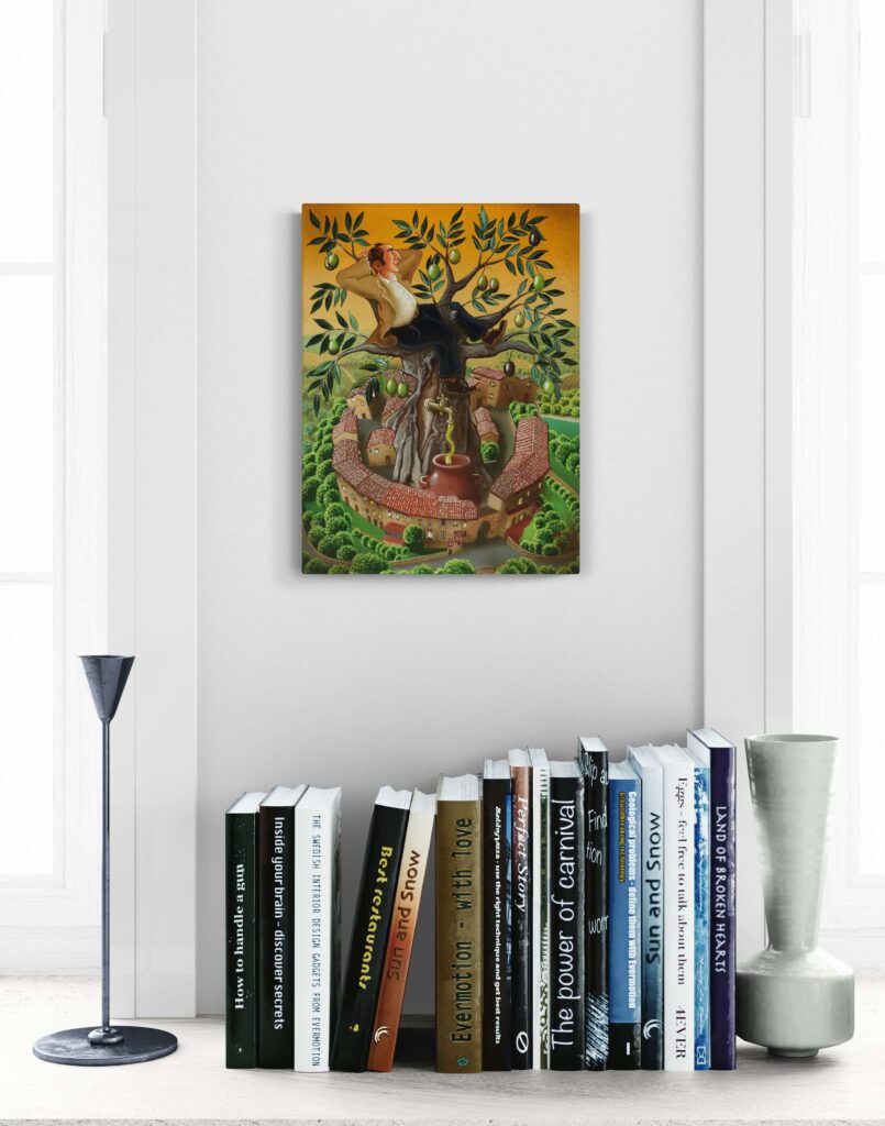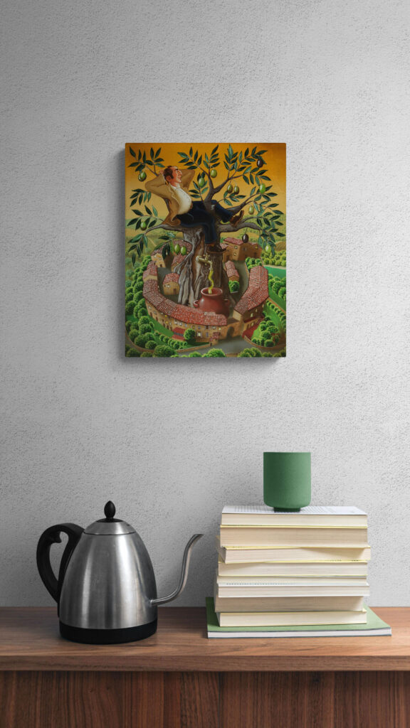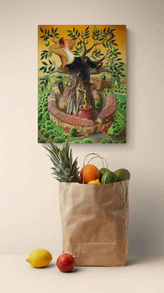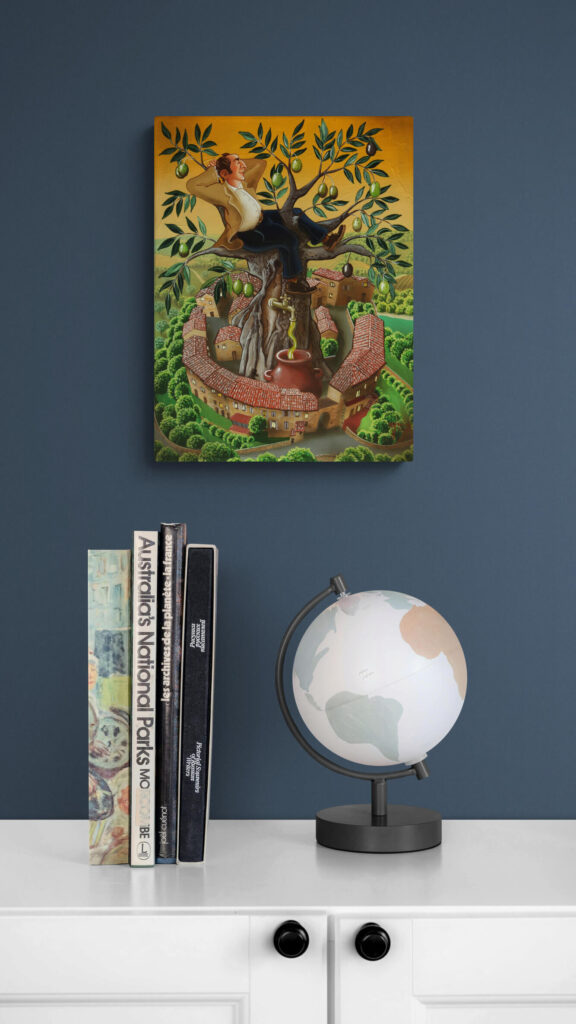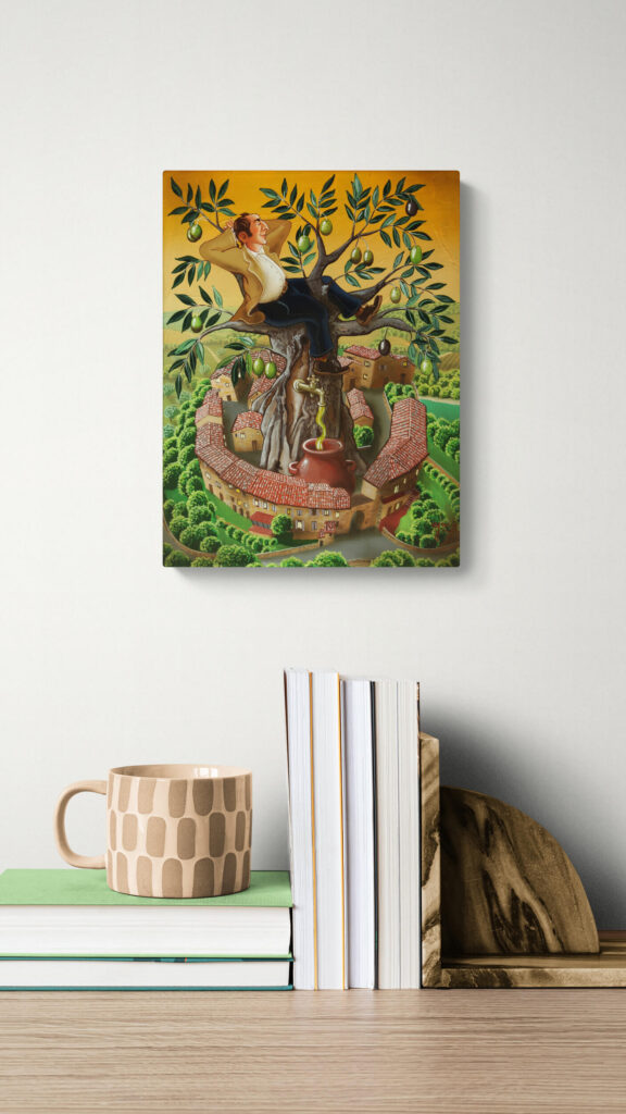 Quest’opera fa parte della collezione Nuove Prospettive del Surrealismo, il nuovo progetto espositivo di Maurizio Vinanti. In questo ciclo, l’artista abbandona la prospettiva tradizionale per esplorare un linguaggio visivo personale e inedito, in cui ogni quadro rappresenta una tappa di un viaggio di trasformazione, ricerca e libertà espressiva.