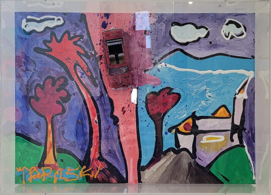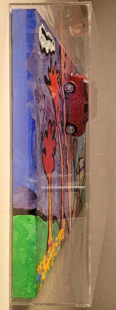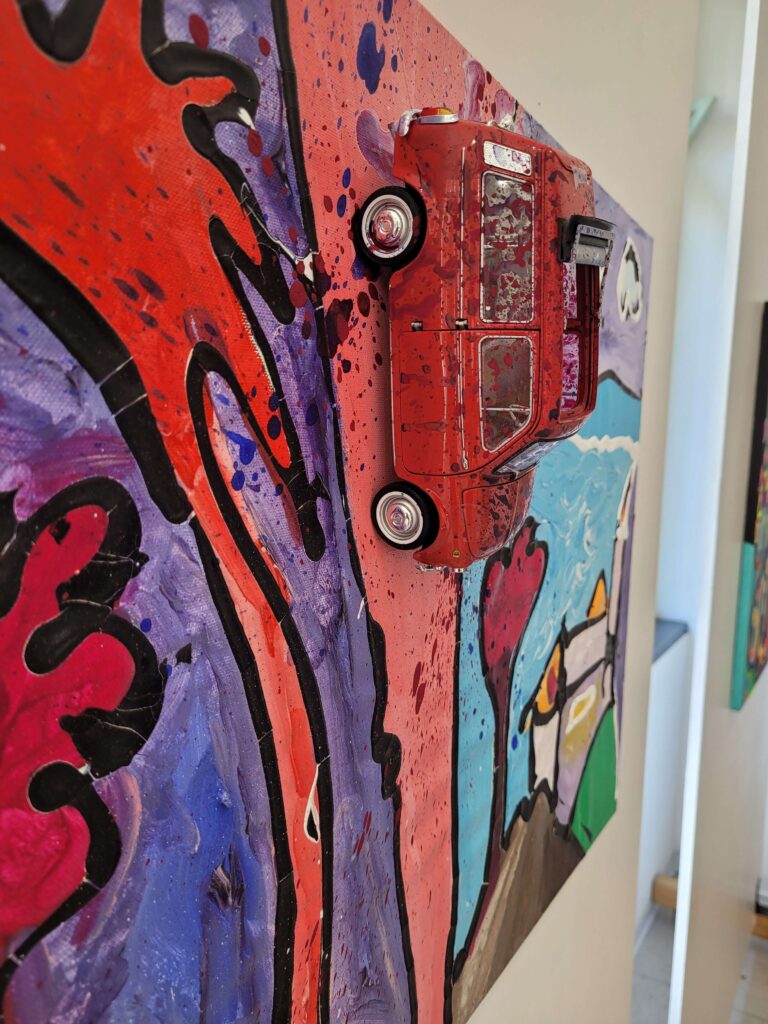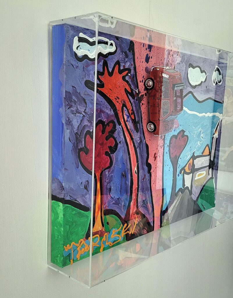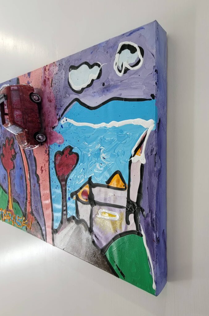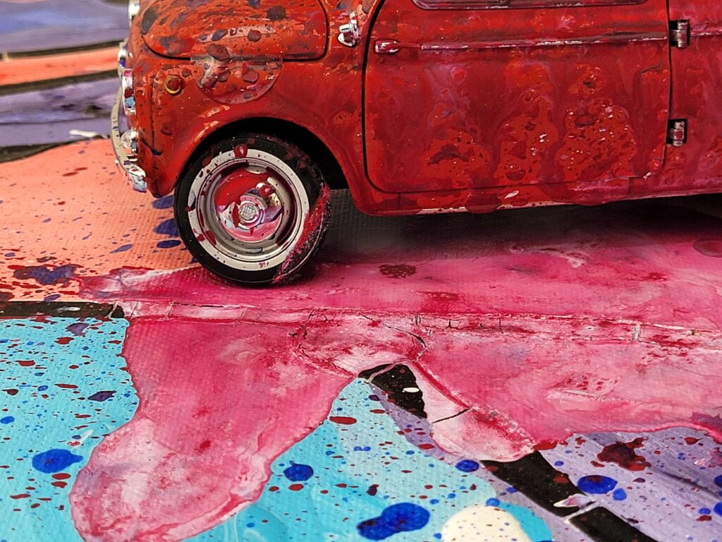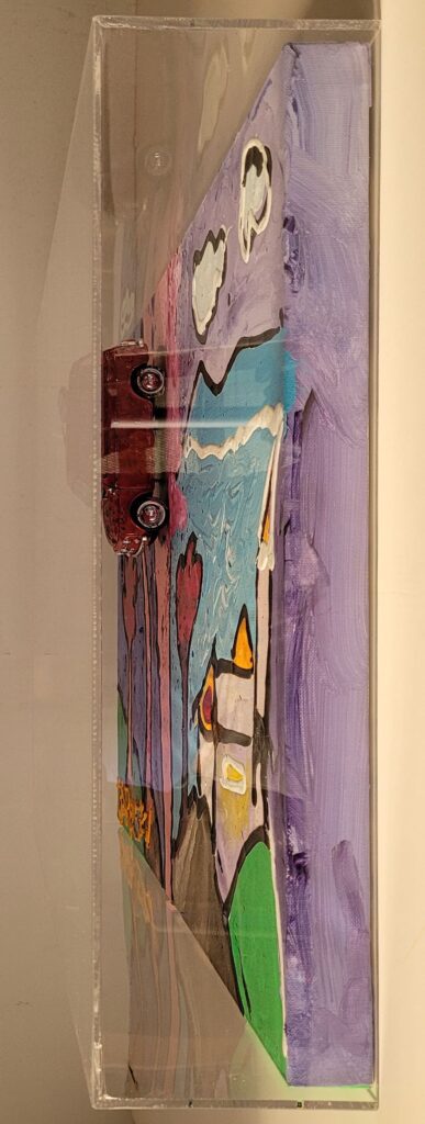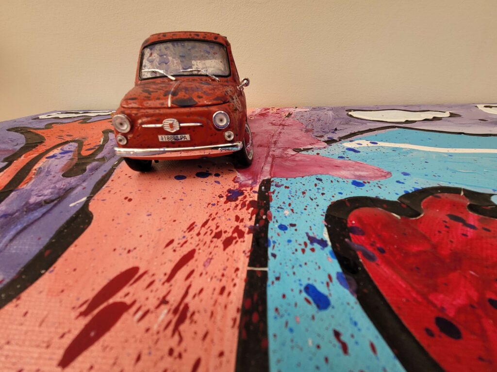 Tecnica: Acrilico, smalto ad acqua, permanent marker, modellino scala 1:18 su tela in box di plexiglass