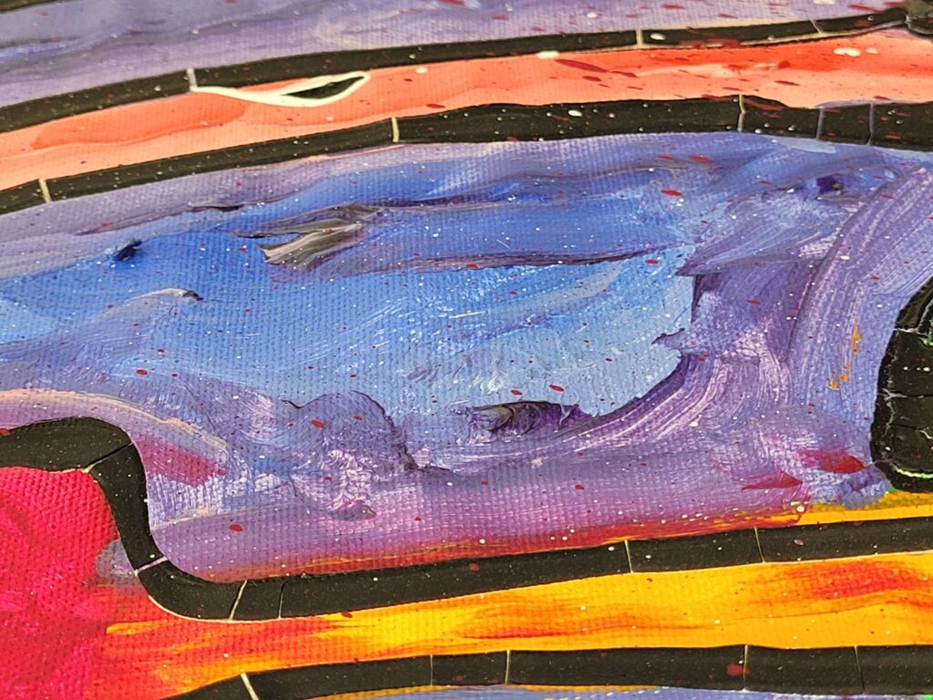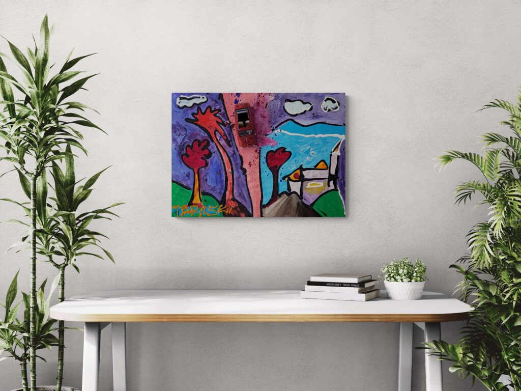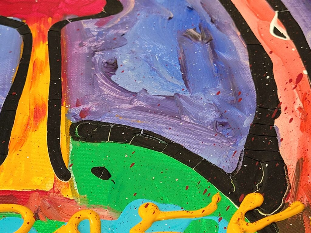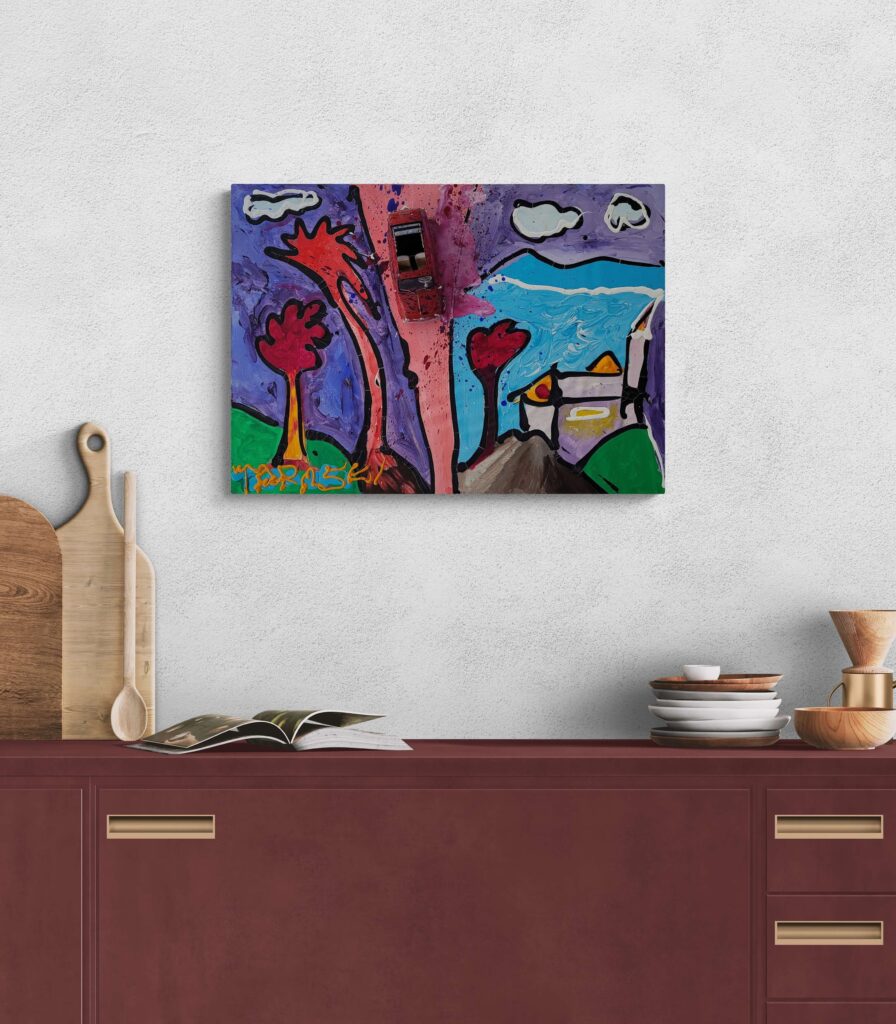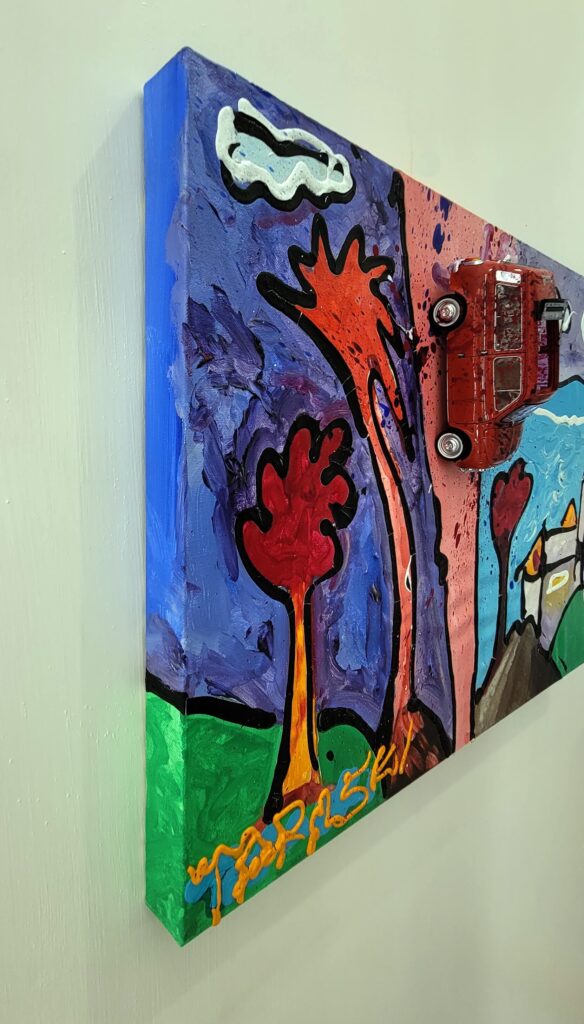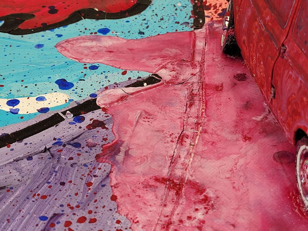 Tecnica: Acrilico, smalto ad acqua, permanent marker, modellino scala 1:18 su tela in box di plexiglass