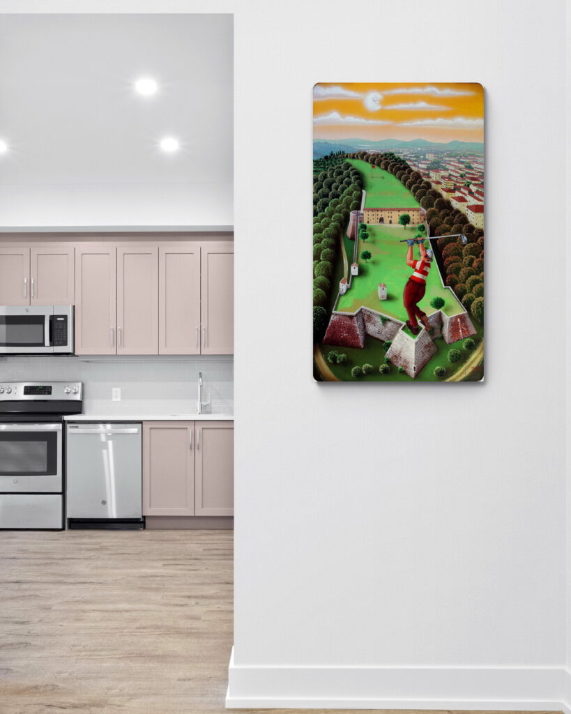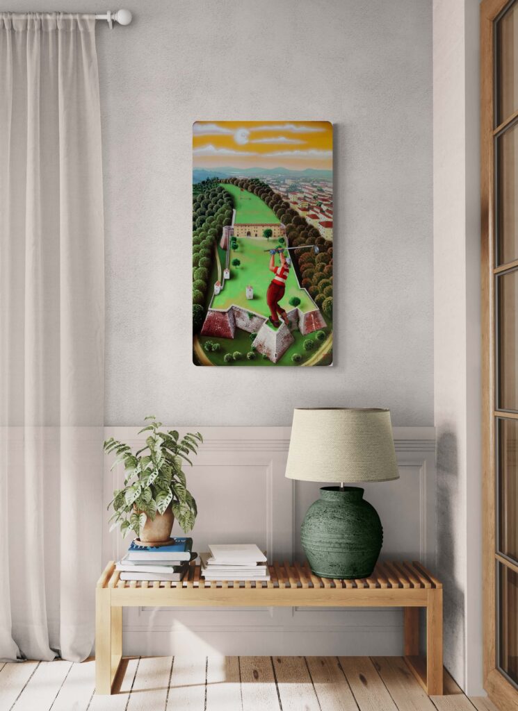 “Vedo ogni tanto che si organizzano sfide a golf nei posti più strani. Nei porti; da una barca all’altra, nelle grandi città; fra un grattacielo e l’altro, a Firenze fra i ponti… mi sono chiesto? Ma ci sono posti non proprio ortodossi dove si potrebbe fare: perché lì no?”