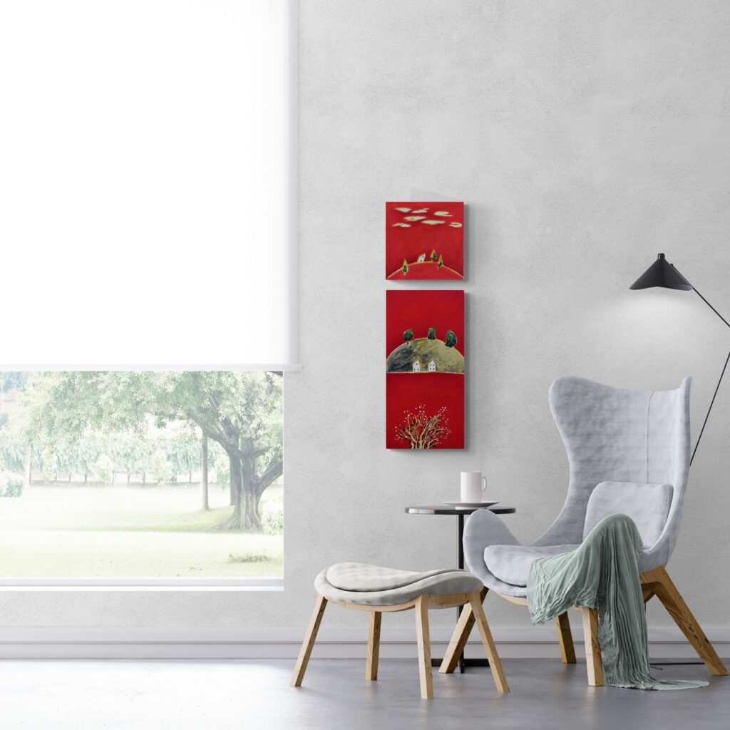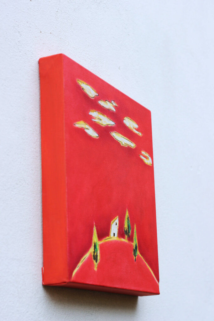 ”La mia ricerca artistica si è sempre concentrata sul paesaggio, sulla natura e sull’ambiente, poiché vivo con grande sensibilità le sfide ambientali contemporanee. Da molti anni, i miei lavori si distinguono per l’uso predominante del colore rosso. Il rosso, come colore più caldo, evoca spontaneamente il surriscaldamento globale e i cambiamenti climatici. Questa scelta cromatica non è solo stilistica ma è diventata un mezzo per comunicare ciò che sta accadendo nel mondo che ci circonda.