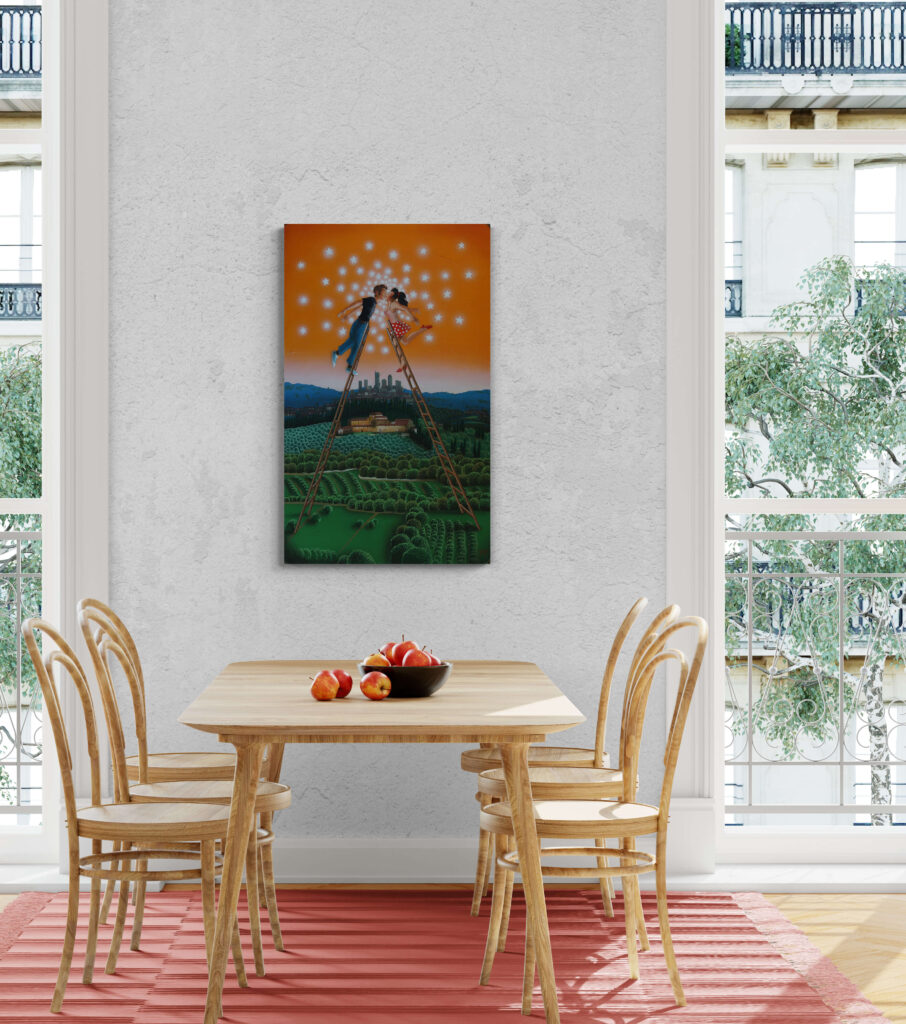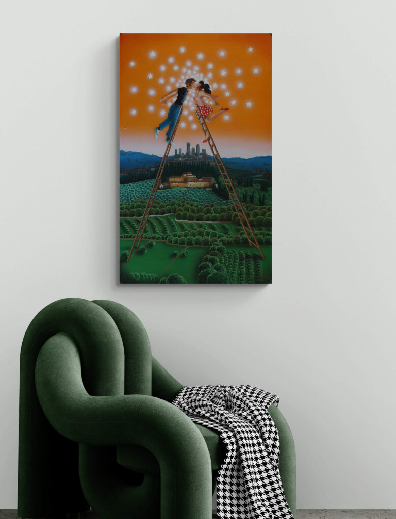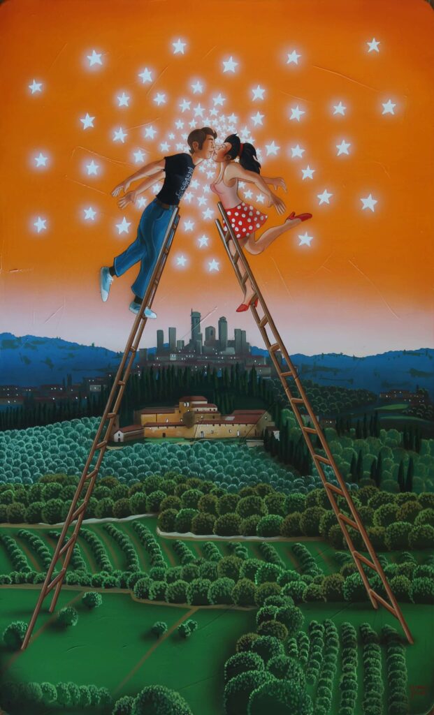 “Credo che per amare bisogna stare in un equilibrio perfetto… immobili nel tempo senza tentennare. E un semplice bacio a sigillo di un amore che viva tra le stelle. dove tutto nasce. Se poi lo fai con quel paradiso di San Gimignano sullo sfondo… Tutto si amplifica.”