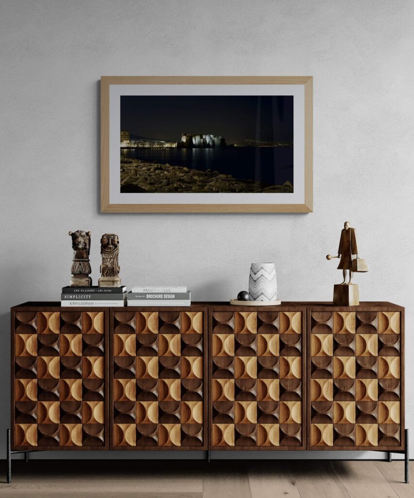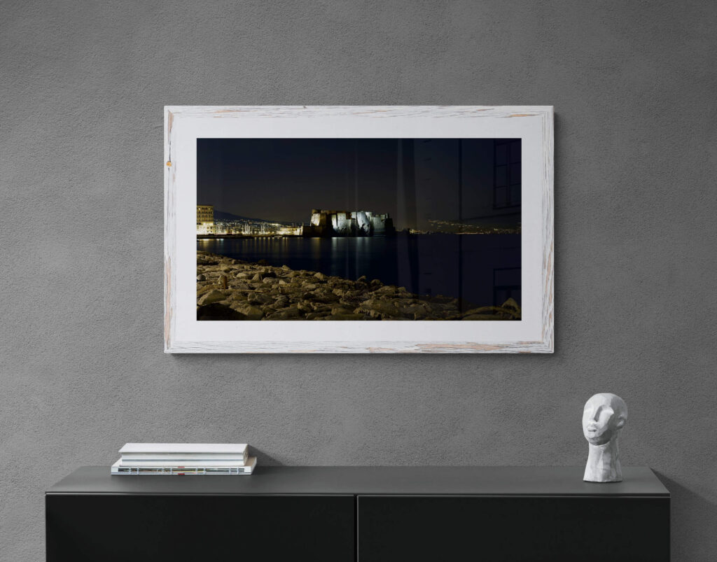 La composizione bilancia sapientemente il peso della materia e la leggerezza del chiarore, costruendo un dialogo tra la permanenza del castello e la vibrazione effimera della vita urbana. In questa visione, Gargiulo non documenta semplicemente un luogo, ma ne evoca l’anima mediterranea — la quiete dopo il giorno, la luce che resiste nel buio, la memoria che continua a respirare nel tempo.