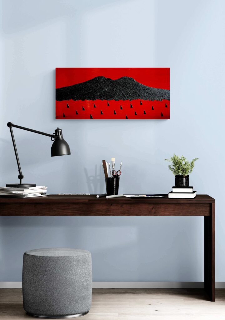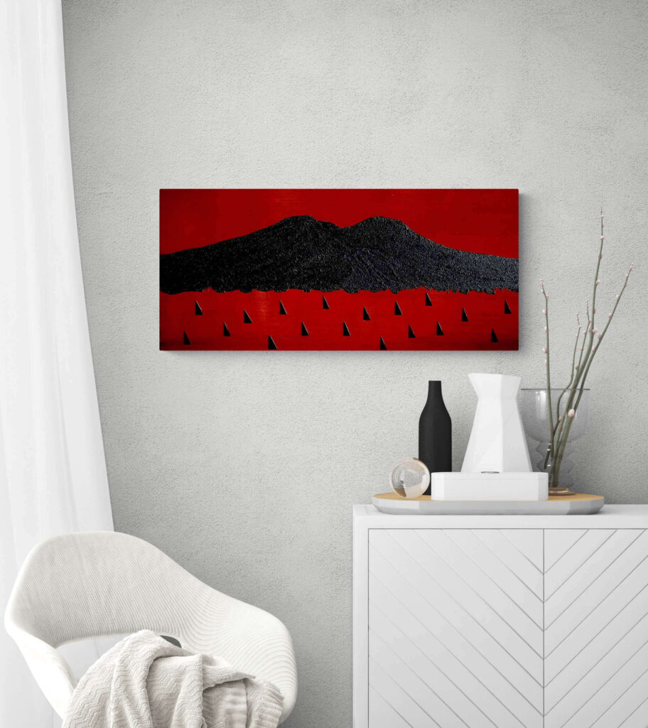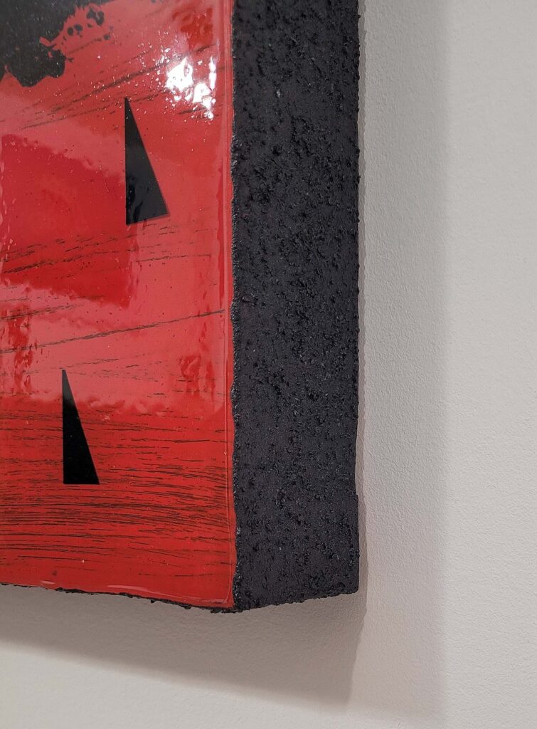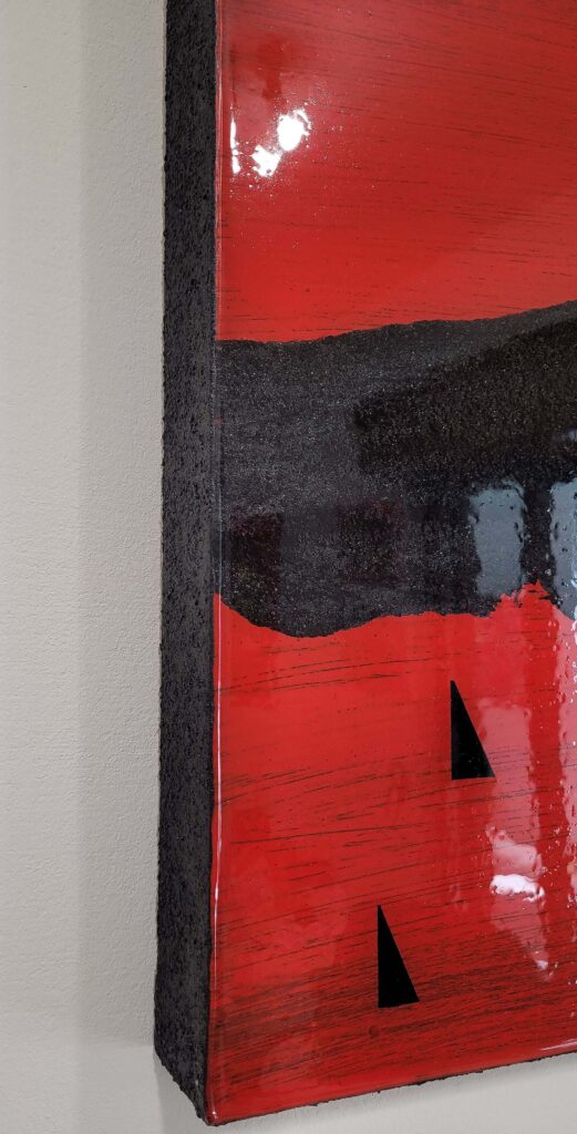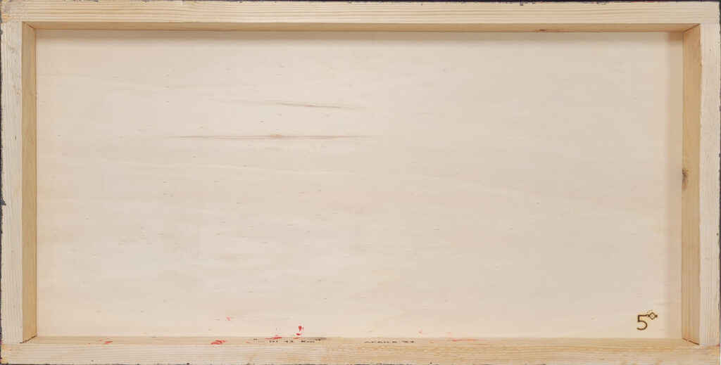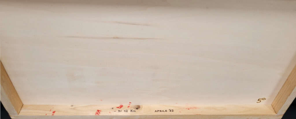 Materiale usato per la tecnica mista: legno, acrilico, malta micacea, cartoncino, vernice, resina epossidica.