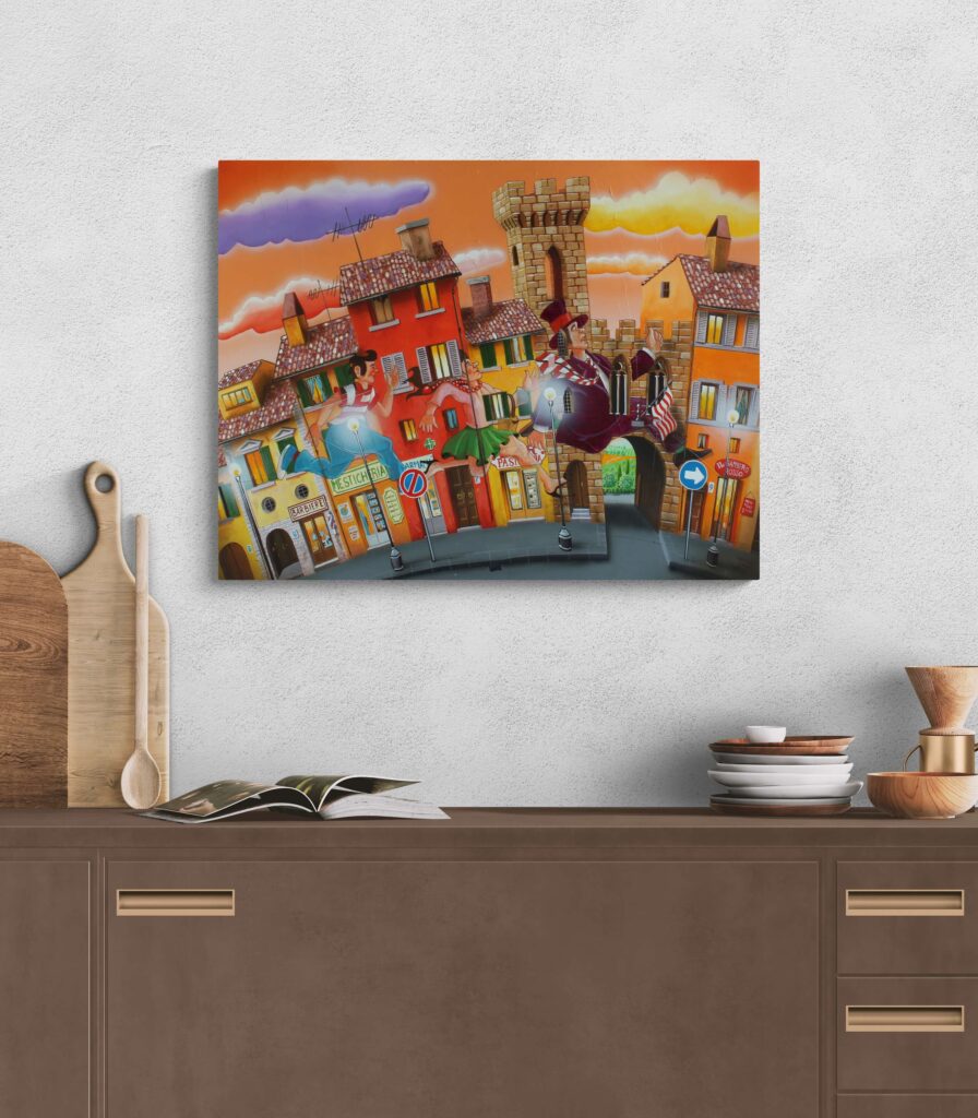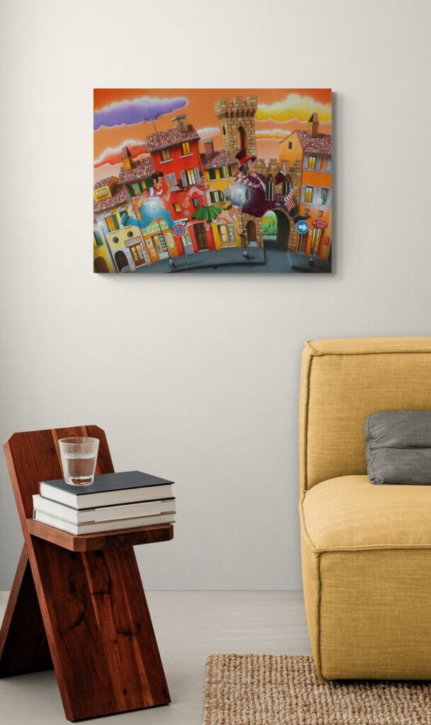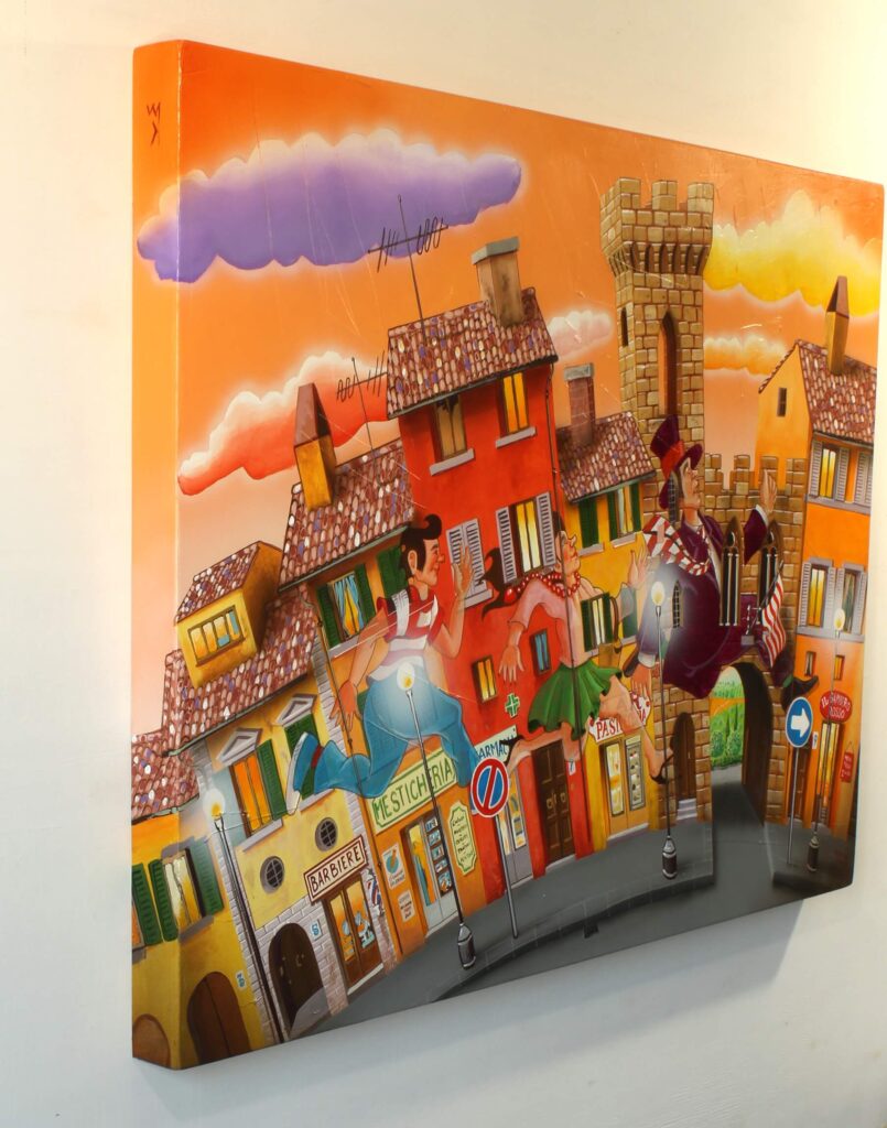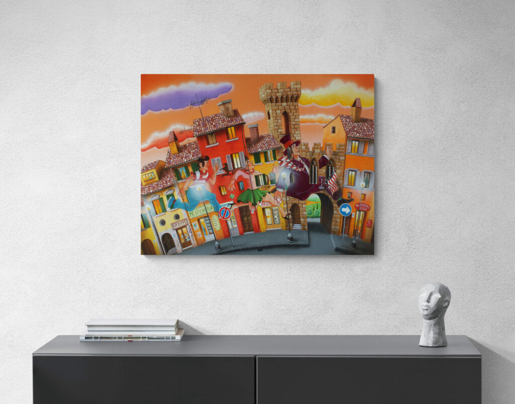 Quest’opera fa parte della collezione Nuove Prospettive del Surrealismo, il nuovo progetto espositivo di Maurizio Vinanti. In questo ciclo, l’artista abbandona la prospettiva tradizionale per esplorare un linguaggio visivo personale e inedito, in cui ogni quadro rappresenta una tappa di un viaggio di trasformazione, ricerca e libertà espressiva.