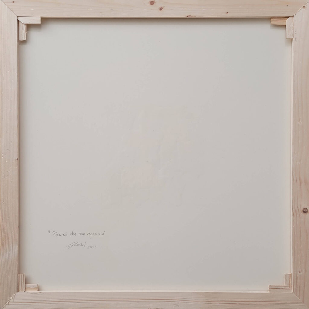 Si tratta di un’opera intrisa di nostalgia e profondità emotiva. L’artista ci invita a riflettere su quei frammenti del passato che restano impressi nella memoria, indipendentemente dal tempo che passa. Alcuni ricordi sono come ombre leggere, altri come segni indelebili che continuano a vivere dentro di noi, riaffiorando nei gesti, nei pensieri, nelle emozioni. Il dipinto sembra evocare questo legame indissolubile con ciò che è stato, raccontando una storia personale ma universale, in cui lo spettatore può riconoscersi e perdersi tra le sfumature del tempo.