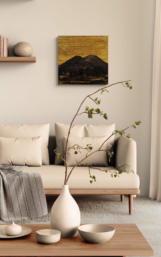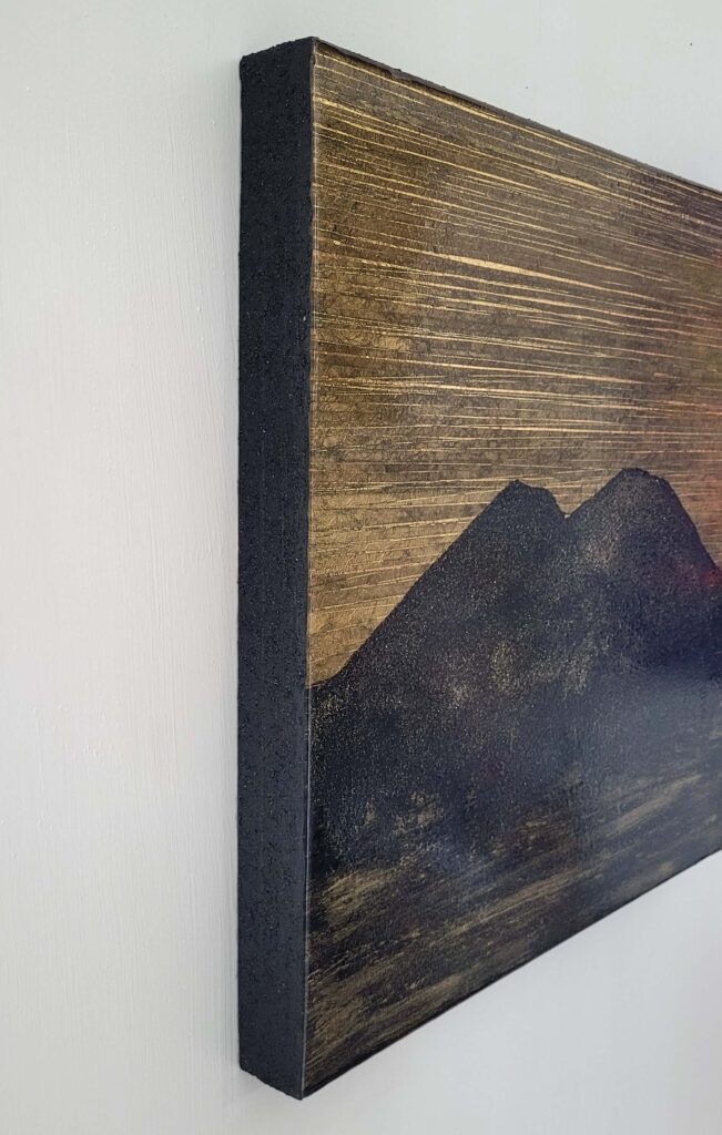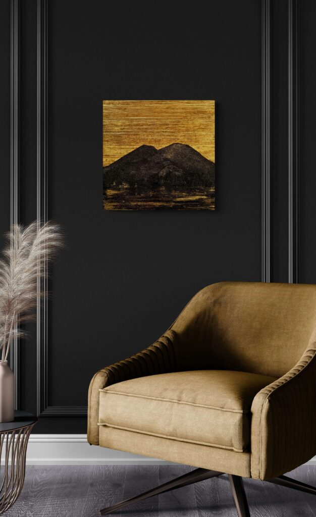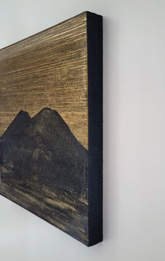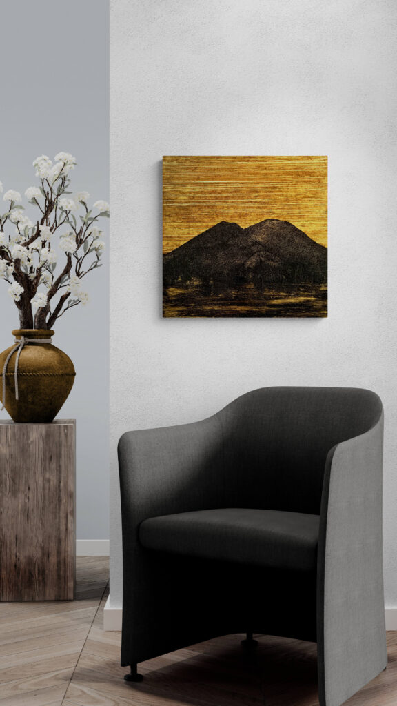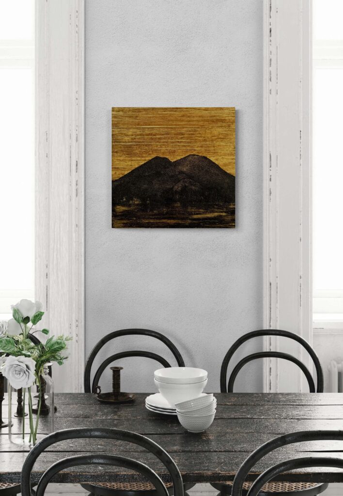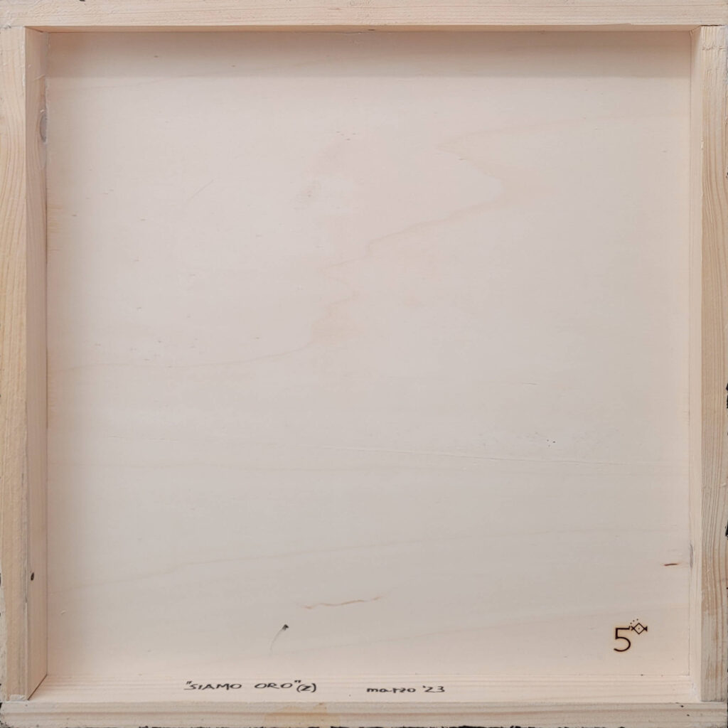 Materiale usato per la tecnica mista: legno, carta, vernice, malta micacea, resina epossidica.