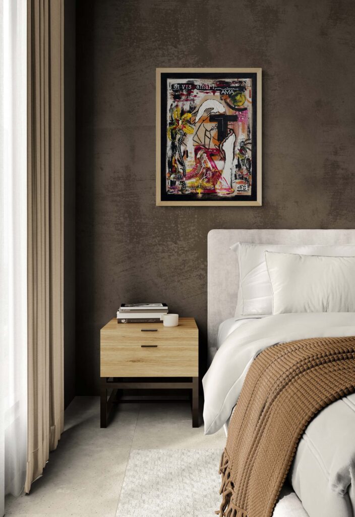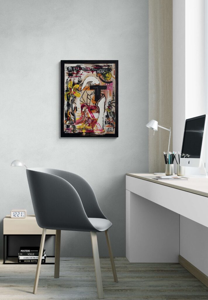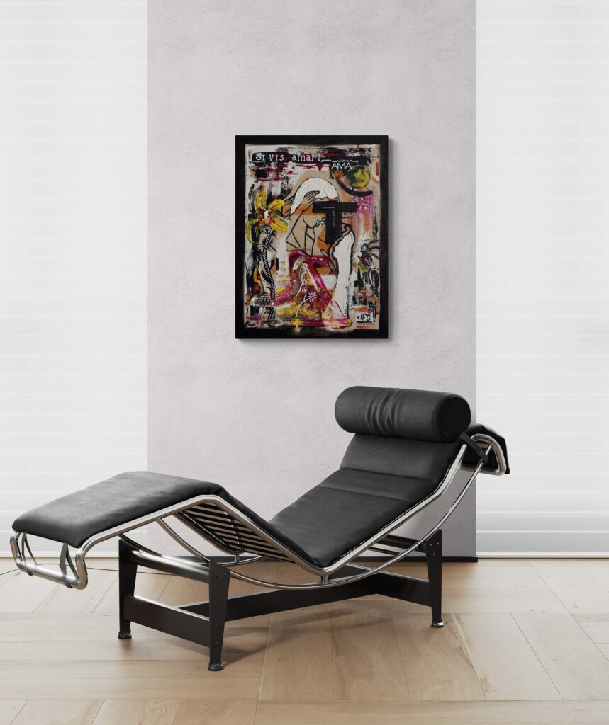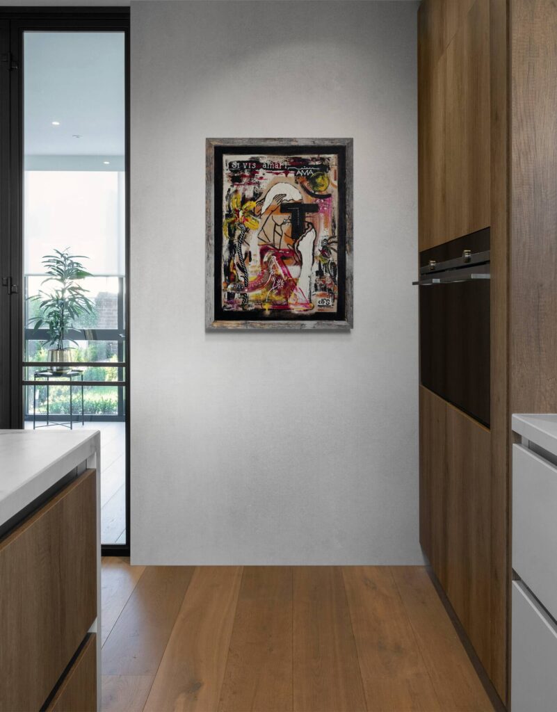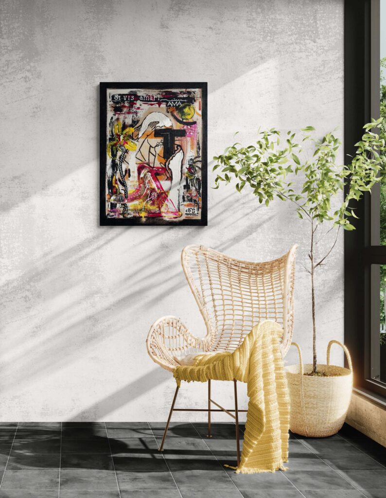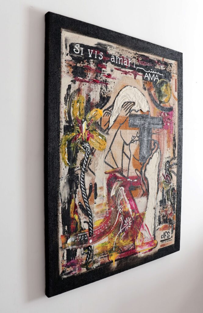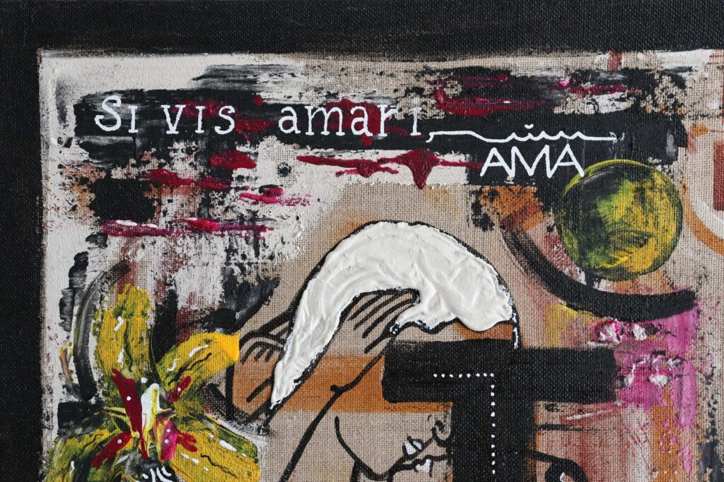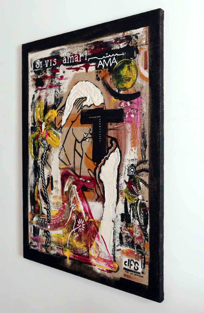 Il titolo di questa opera rappresenta un invito antico quanto l’uomo, inciso nel colore e nella materia: “Se vuoi essere amato, ama.”