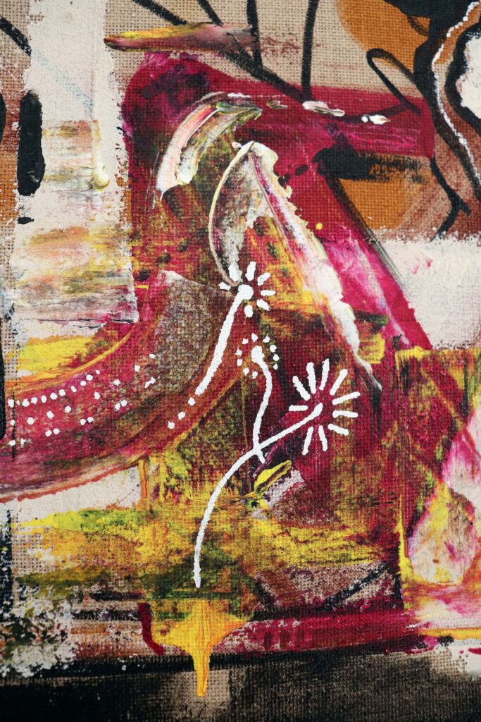 Le texture materiche, quasi scultoree, trasformano l’opera in un dialogo tattile: la pittura si fa pelle, respiro, emozione.