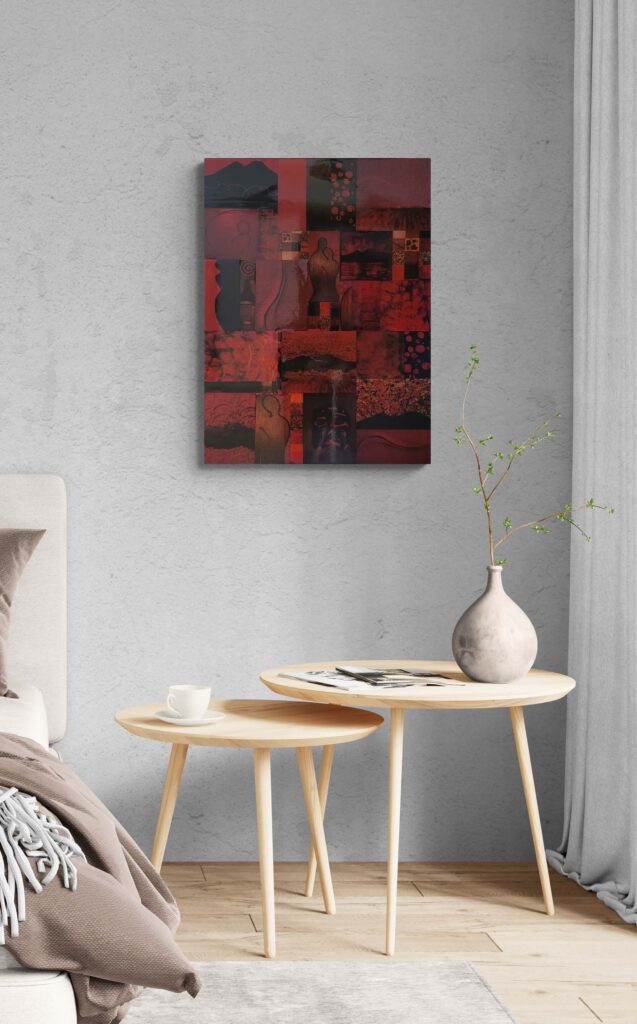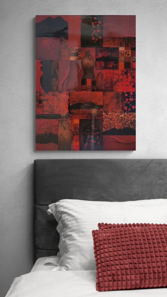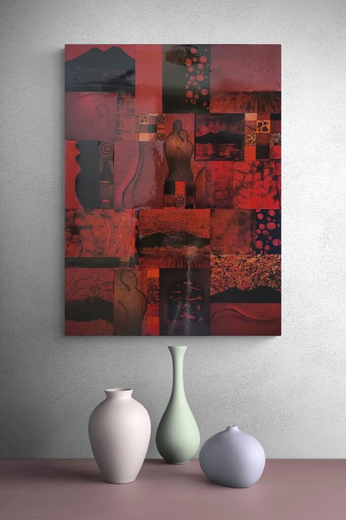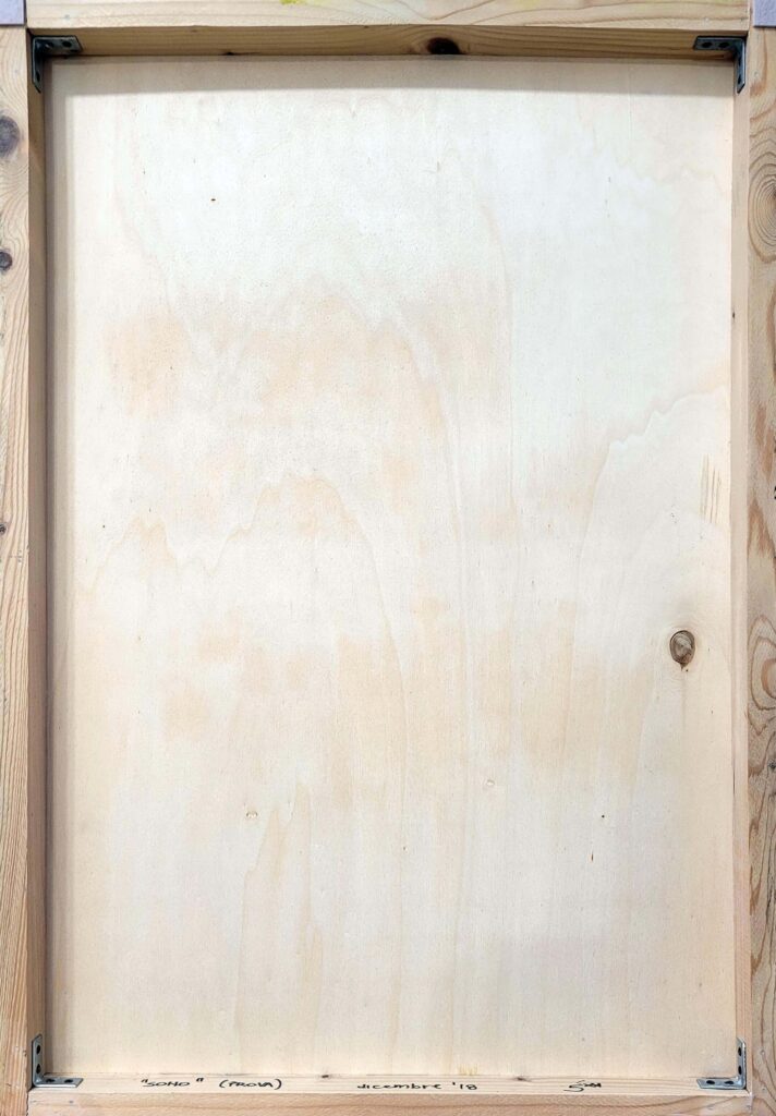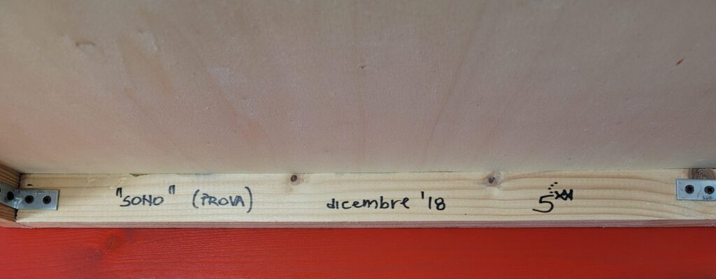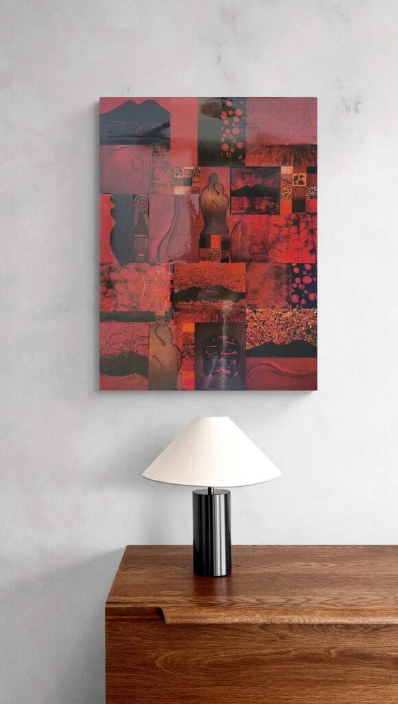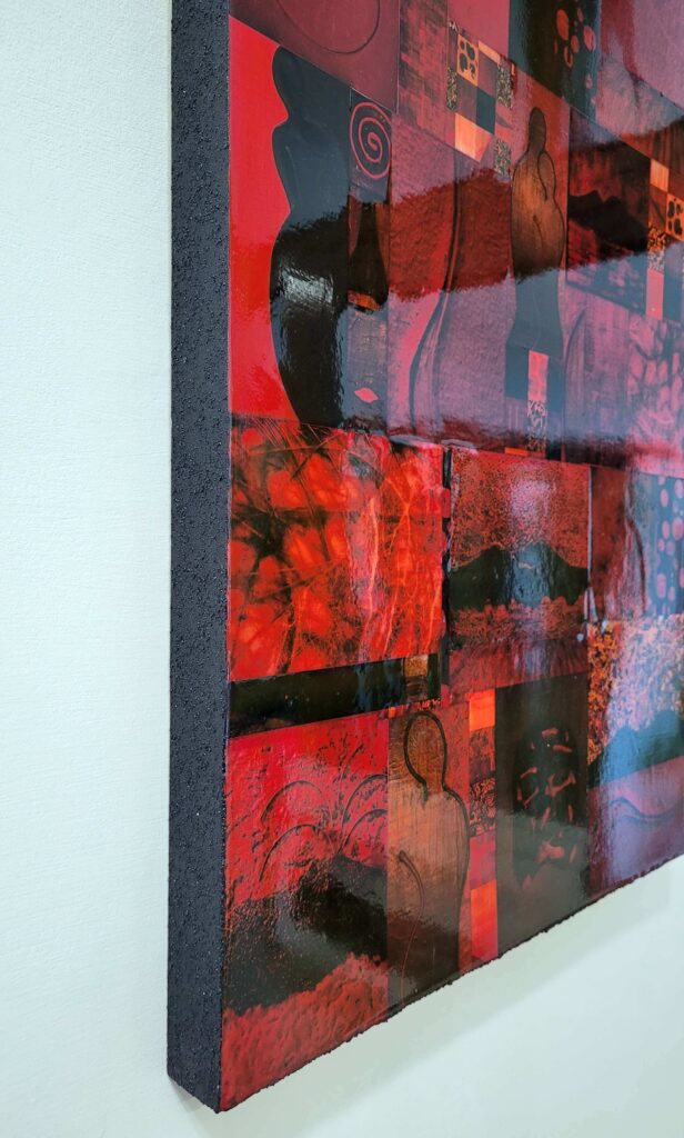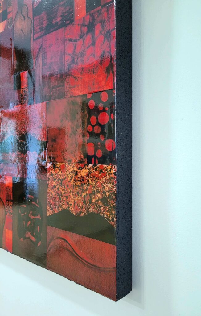 Materiale usato per la tecnica mista: legno, carta fotografica, malta micacea, resina epossidica, vernice.