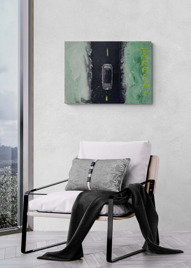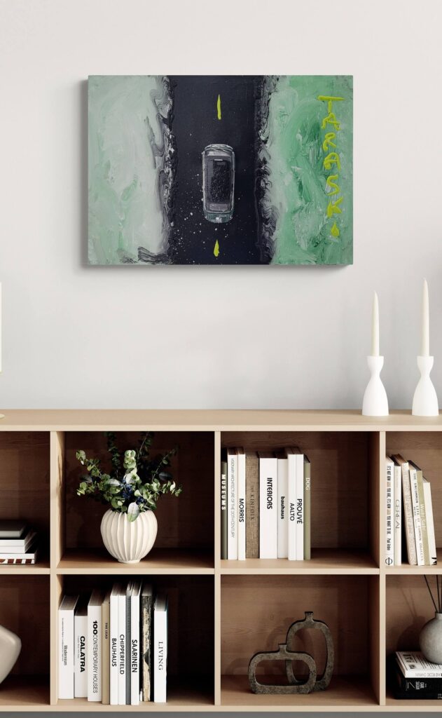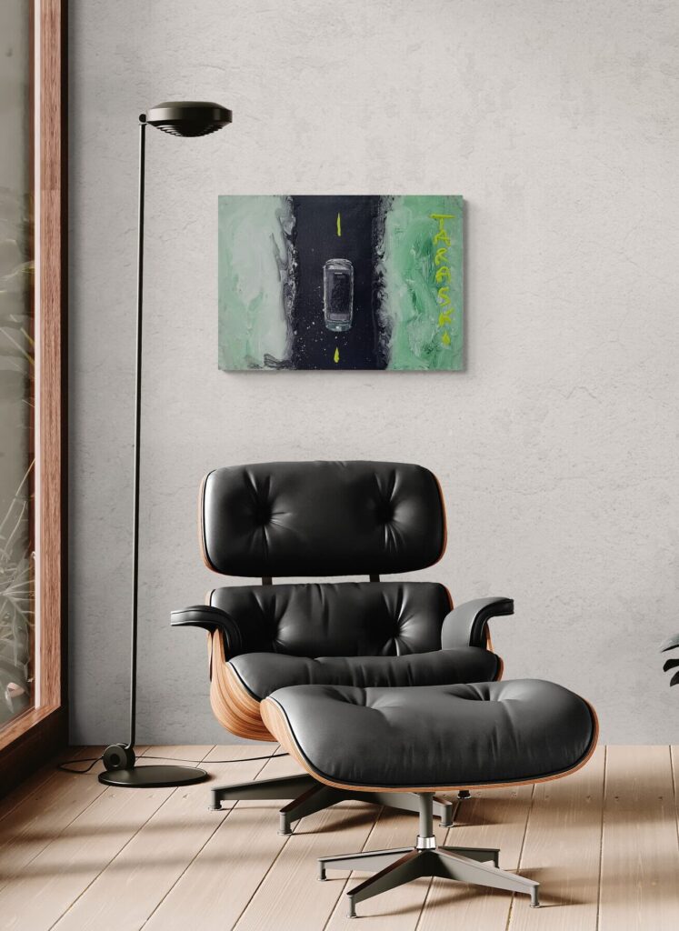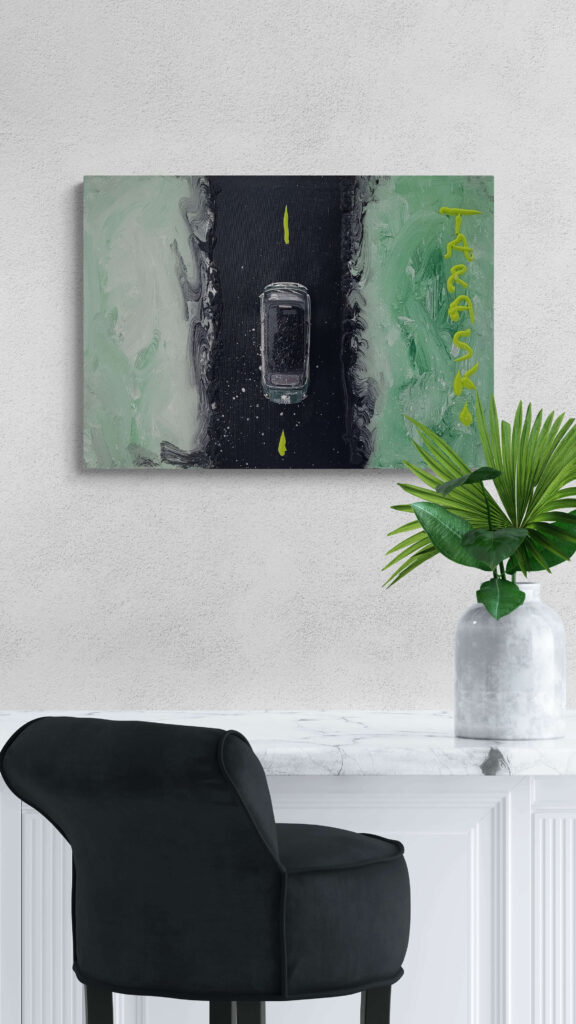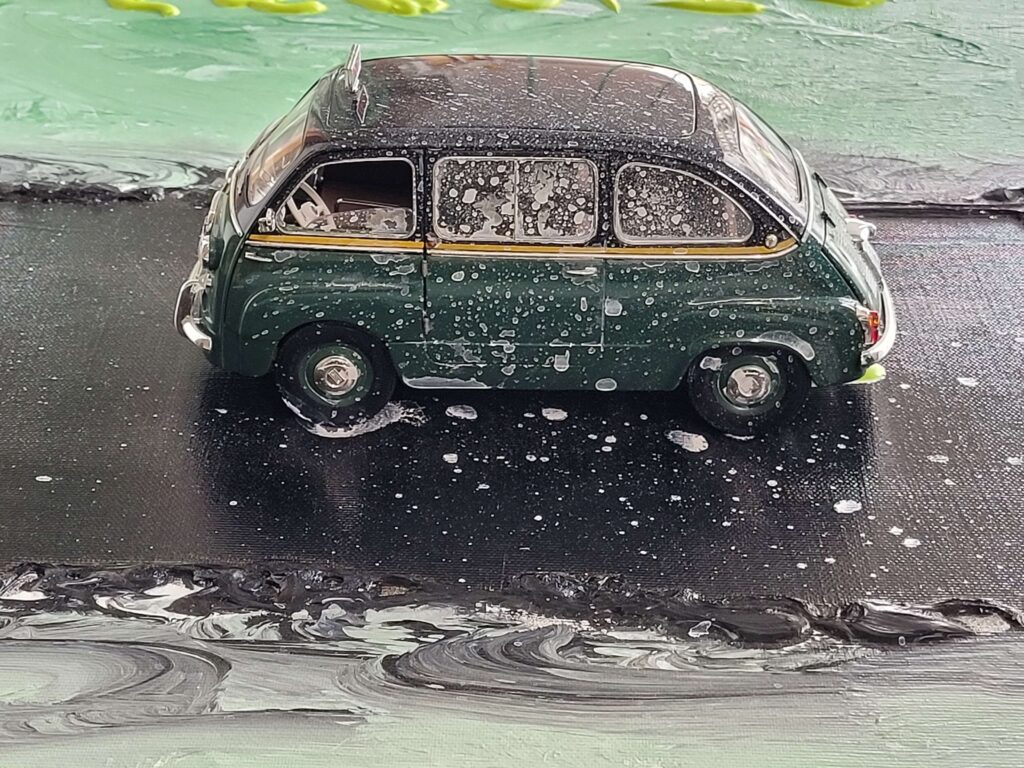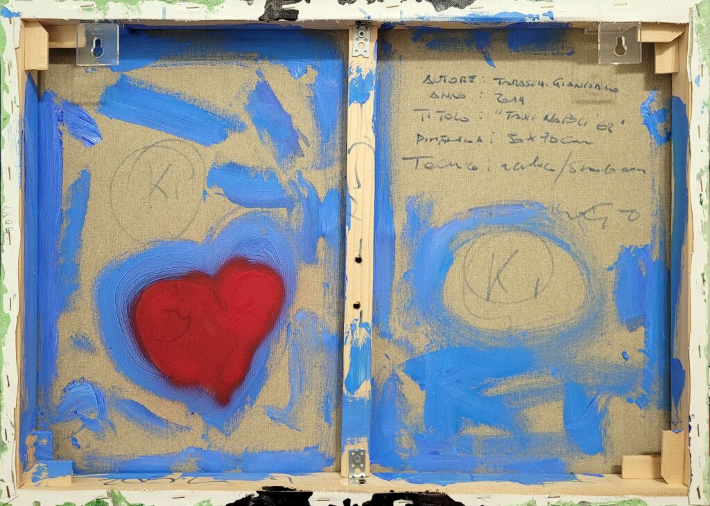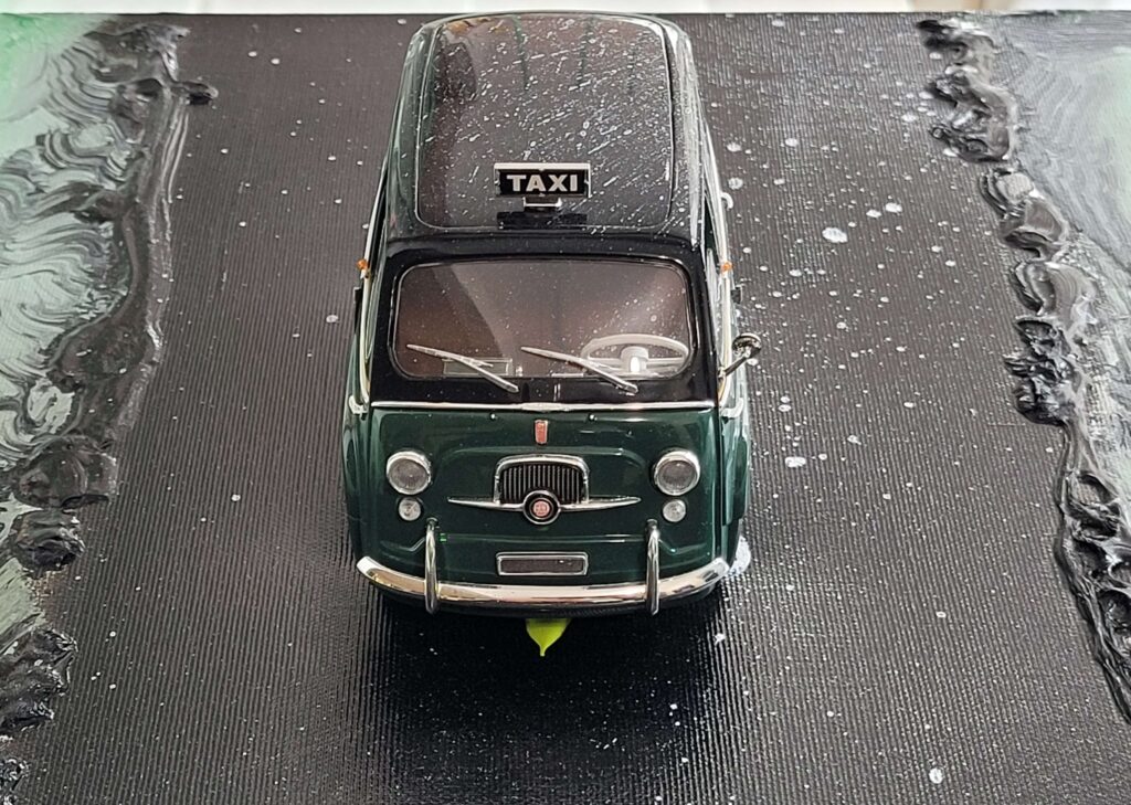 Tecnica: Acrilico, smalto, gesso, permanent marker, modellino su tela in box di plexiglass
