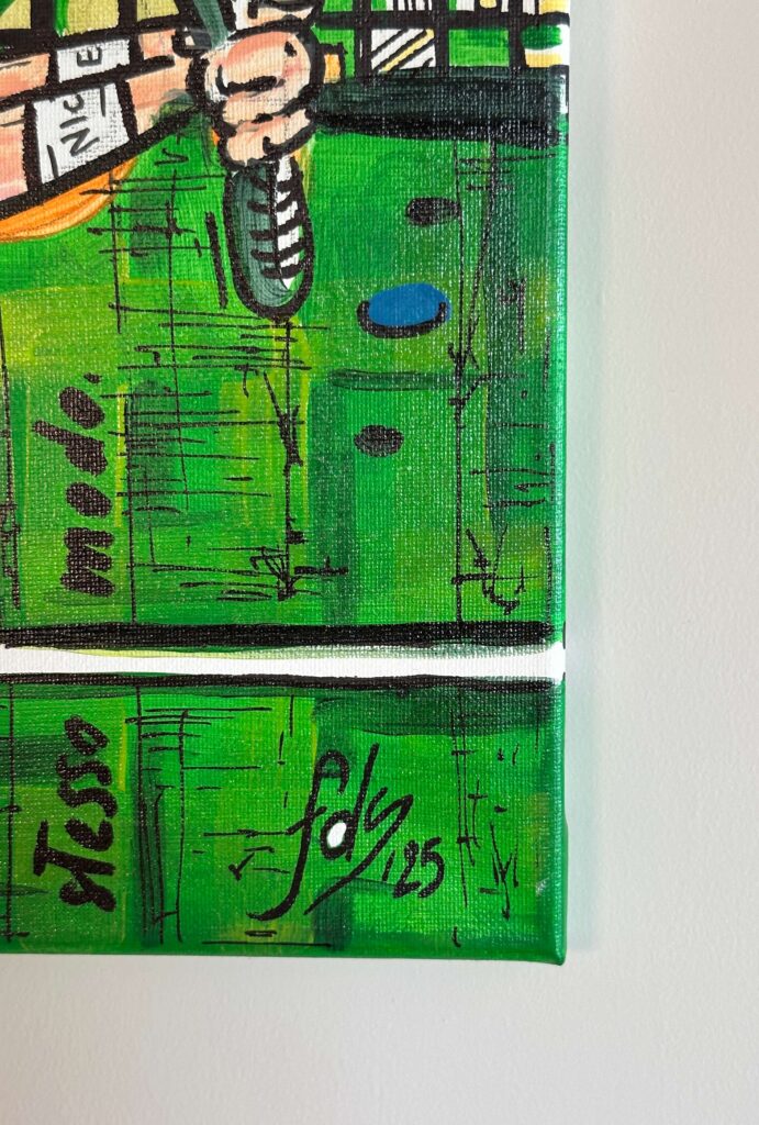 I colori si scontrano e si abbracciano, raccontando l’adrenalina che scorre, la passione che spinge oltre i limiti, la poesia di chi non smette di crederci. È un inno alla tenacia, ma anche alla bellezza dell’imperfezione, a quella fragilità che rende umani anche i giganti, a quel sublime equilibrio tra forza e vulnerabilità.