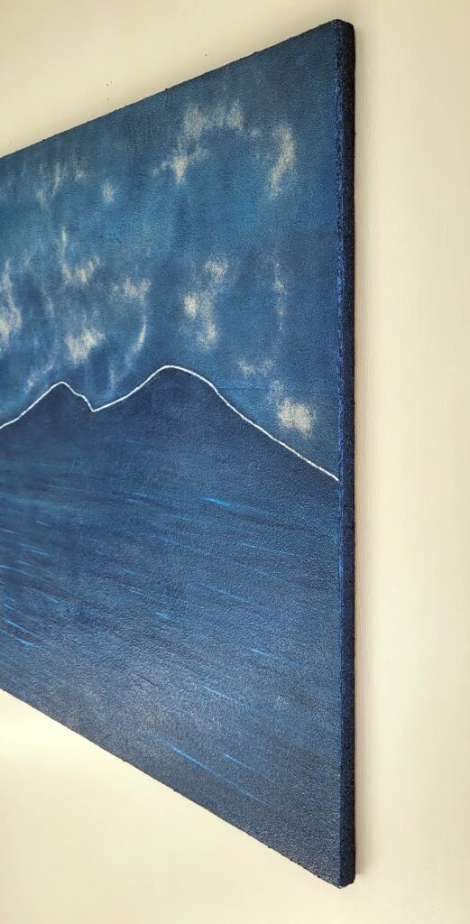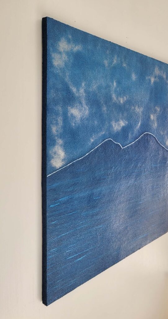 Materiale usato per la tecnica mista: legno, malta micacea, acrilico, porporina, vernice.