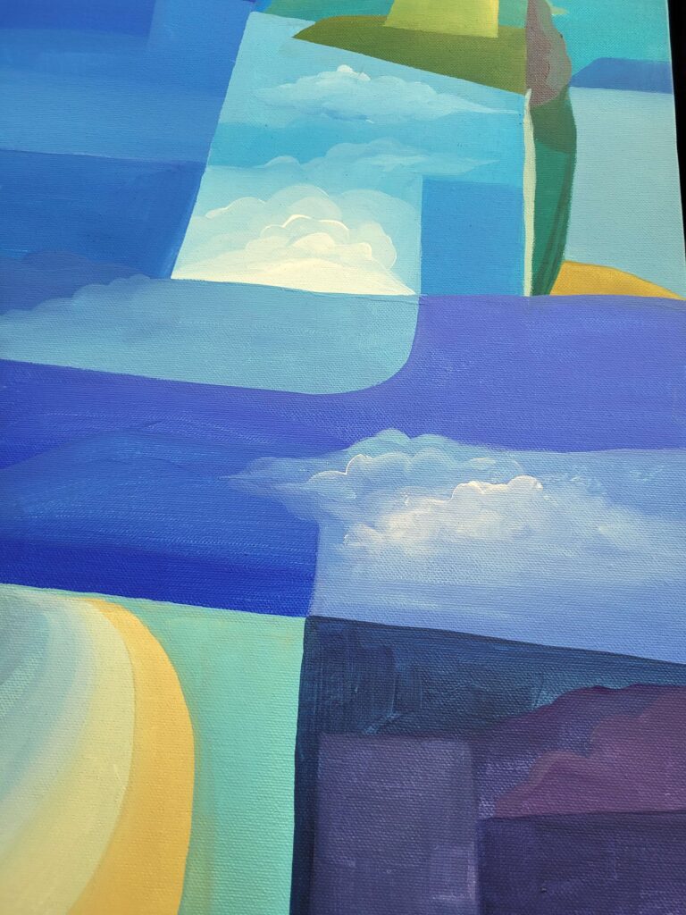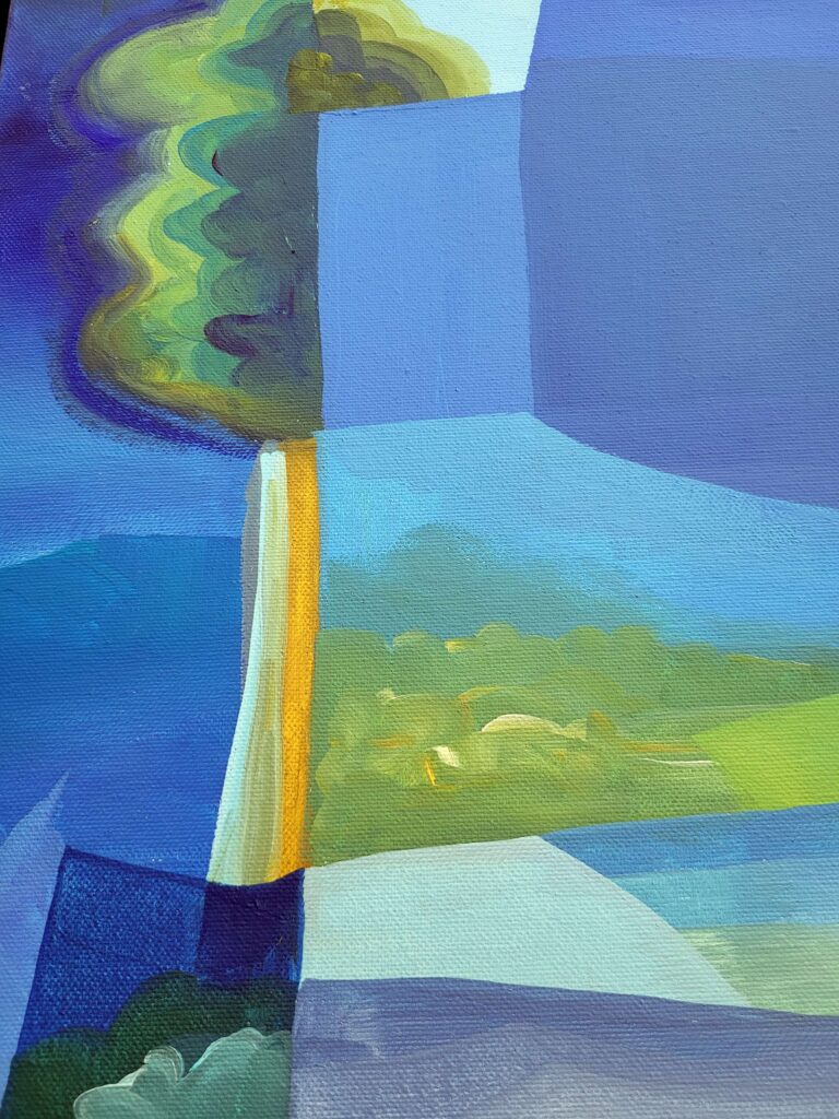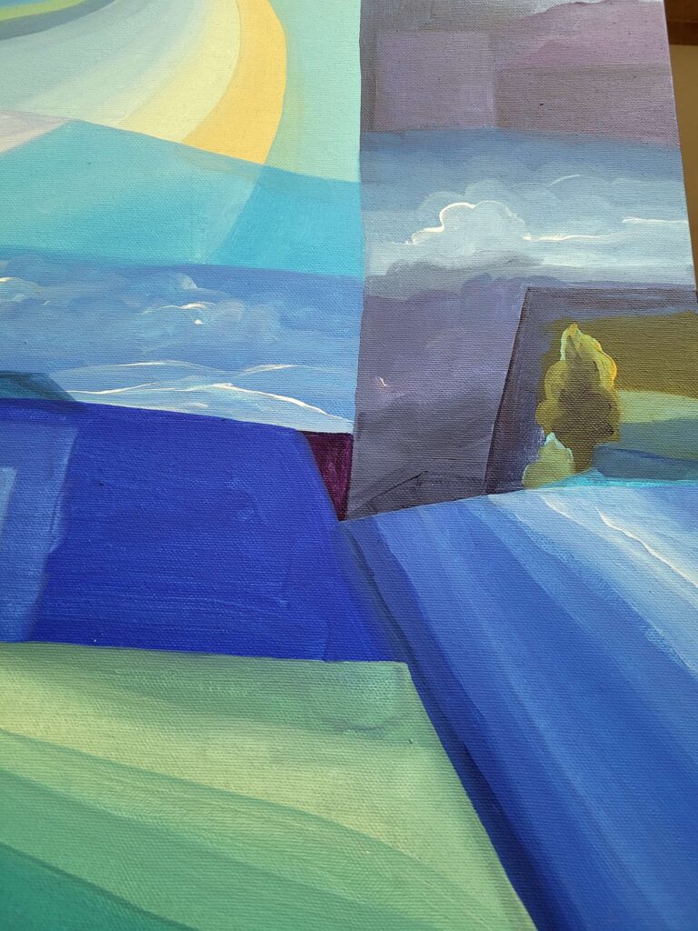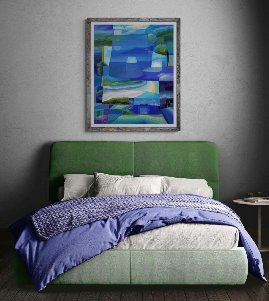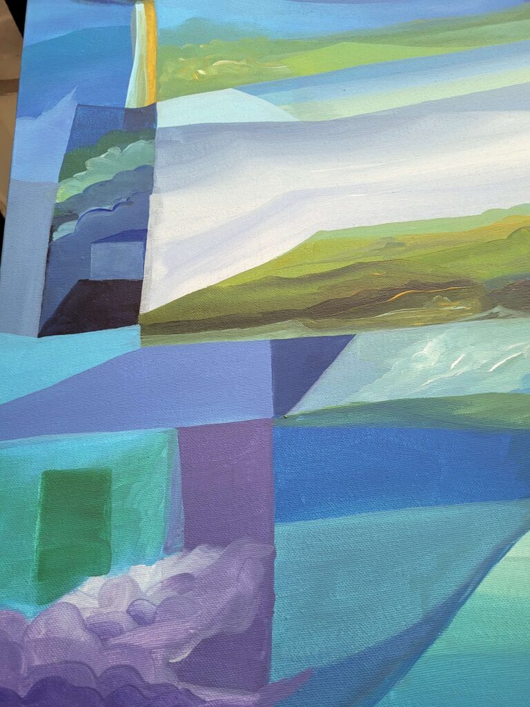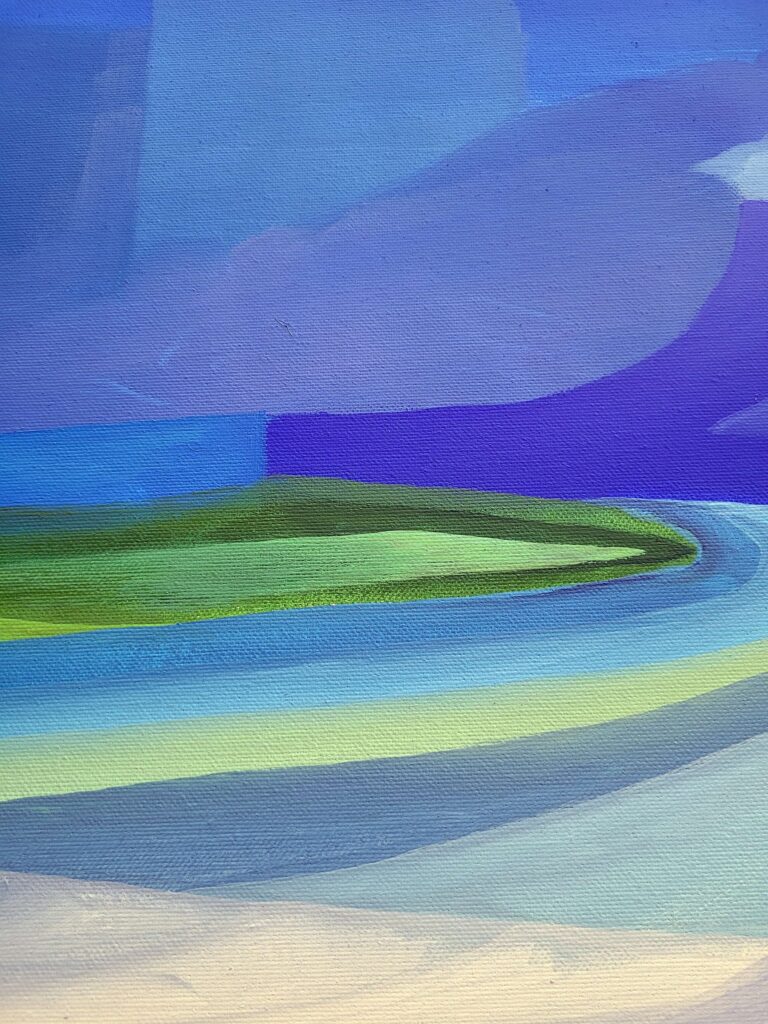 Un mosaico di frammenti luminosi e fluidi racconta il susseguirsi di istanti, come pagine sfogliate dalla memoria. L’andamento curvilineo delle forme guida lo sguardo lungo traiettorie dolci e continue, in cui cielo, terra e mare si intrecciano senza soluzione di continuità. In questo flusso, Bazzoni cattura la percezione del tempo non come una linea retta, ma come un insieme di ritorni, risonanze e cicli interiori.