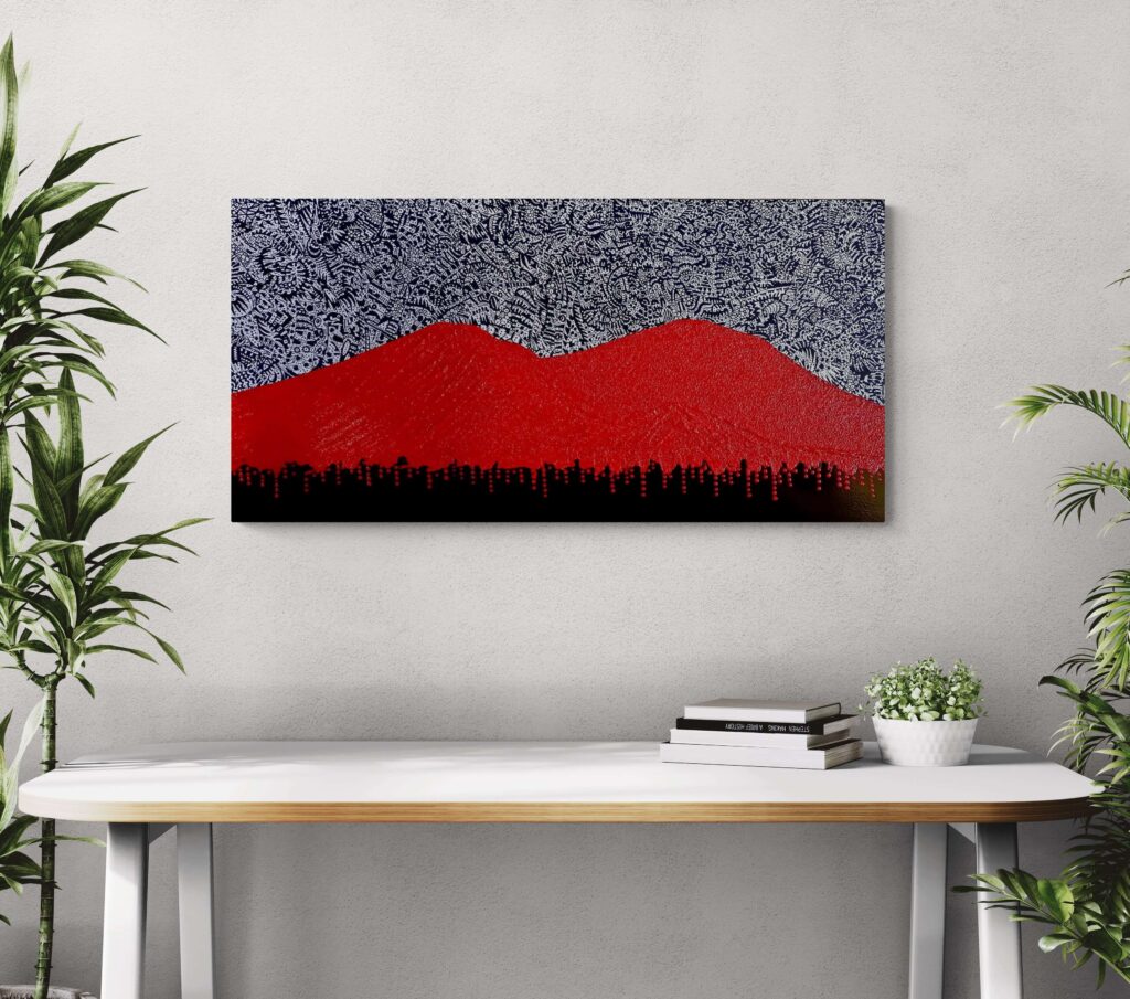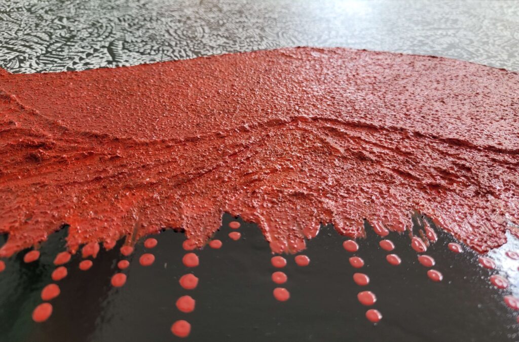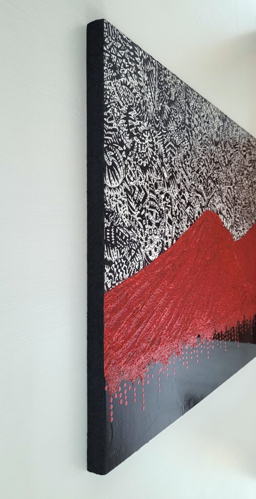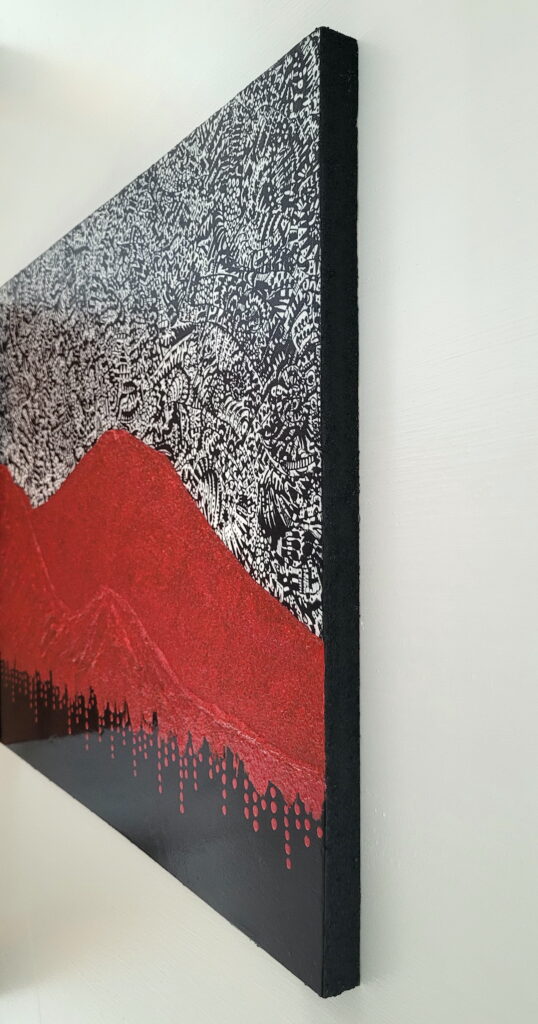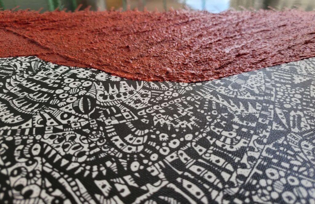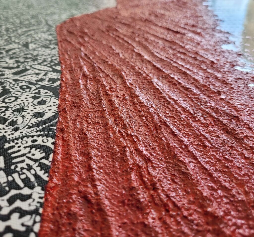 Materiale usato per la tecnica mista: legno, tela fotografica, smalto, malta micacea, vernice.