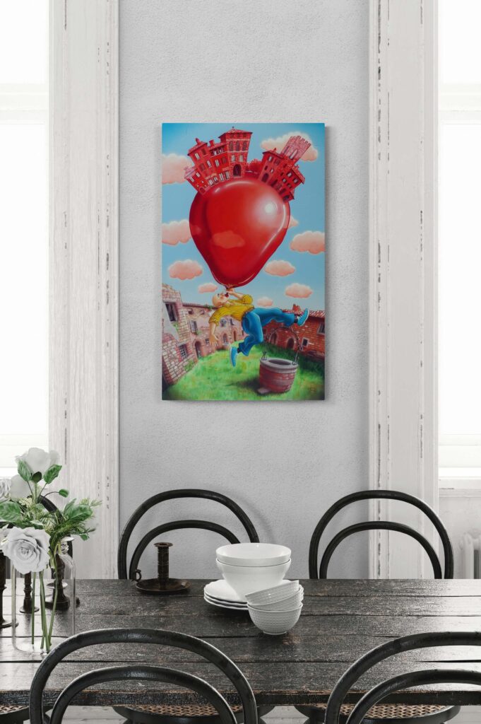 In questo scenario, il palloncino diventa visione: fragile, fluttuante, testimone di un’identità smarrita.