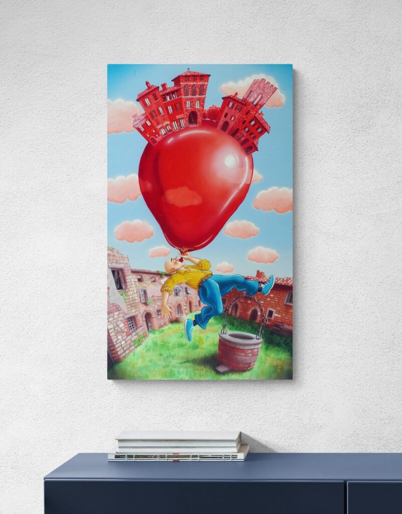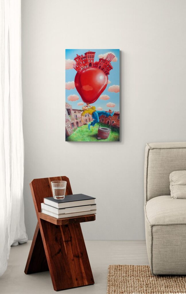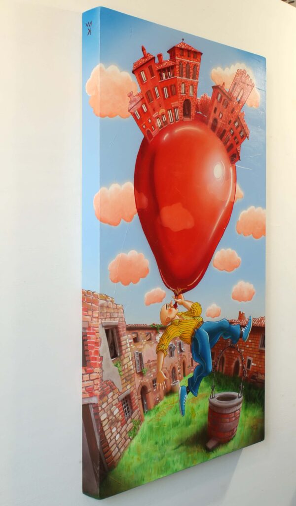 Quest’opera fa parte della collezione Nuove Prospettive del Surrealismo, il nuovo progetto espositivo di Maurizio Vinanti. In questo ciclo, l’artista abbandona la prospettiva tradizionale per esplorare un linguaggio visivo personale e inedito, in cui ogni quadro rappresenta una tappa di un viaggio di trasformazione, ricerca e libertà espressiva.